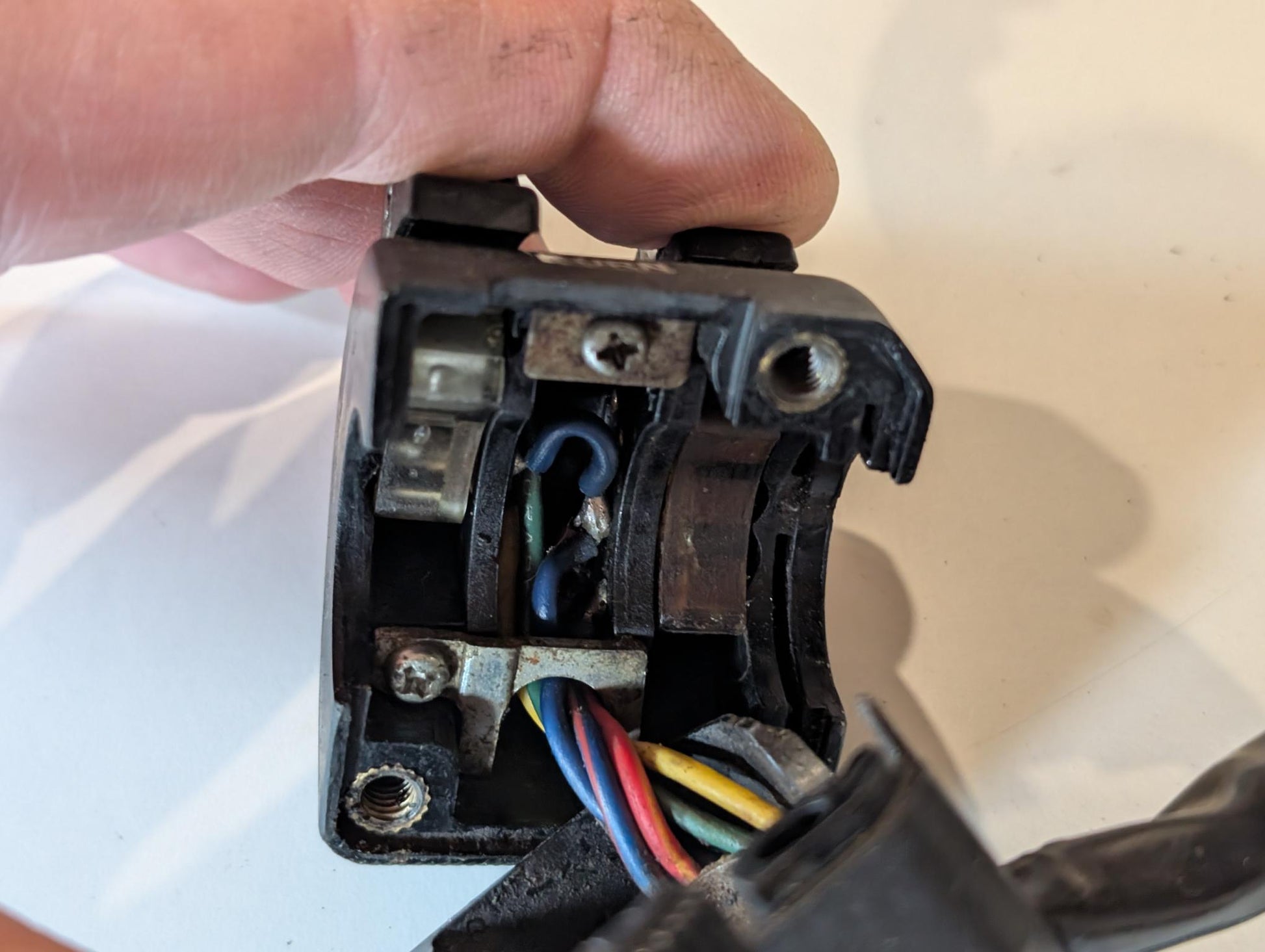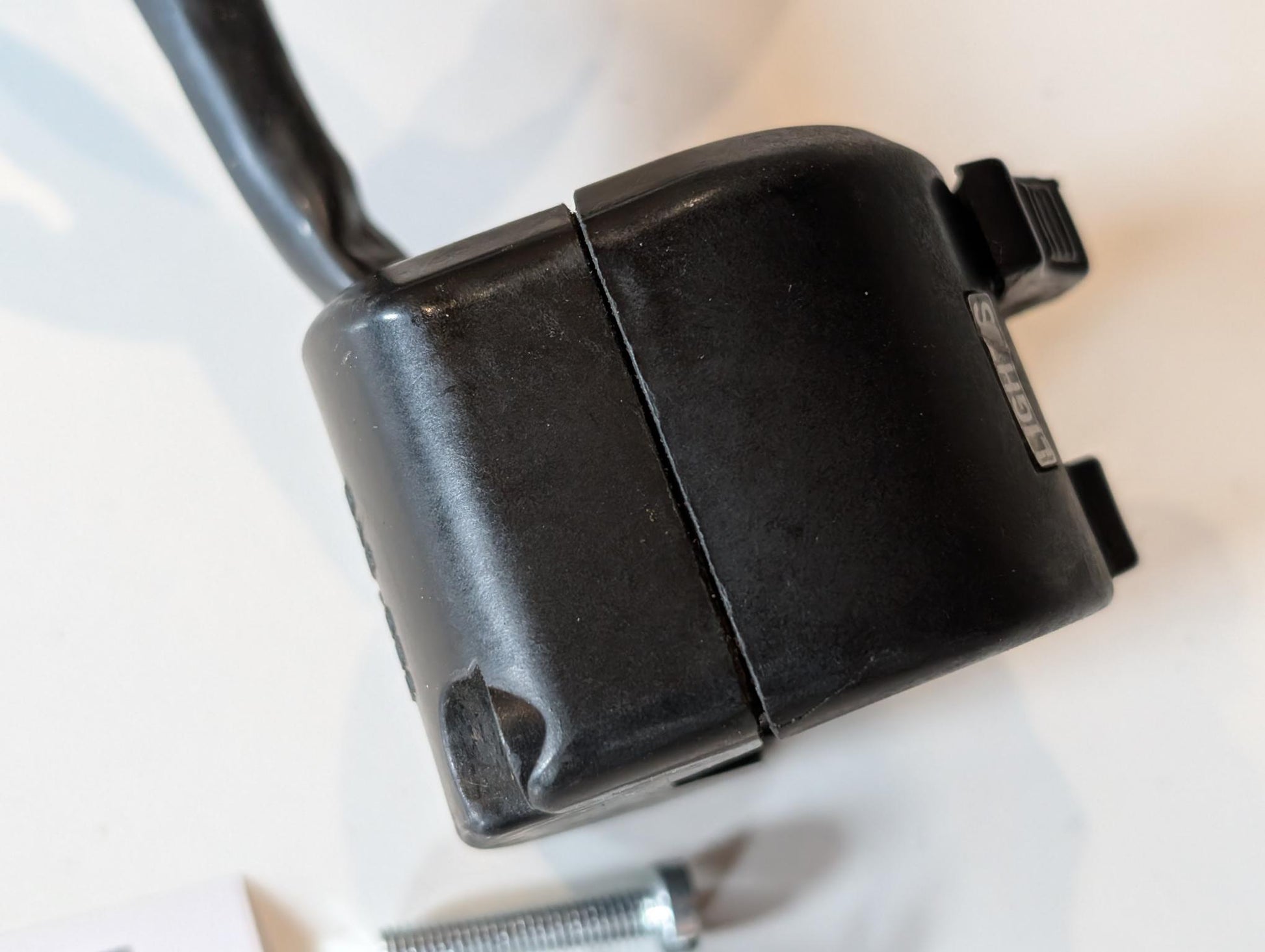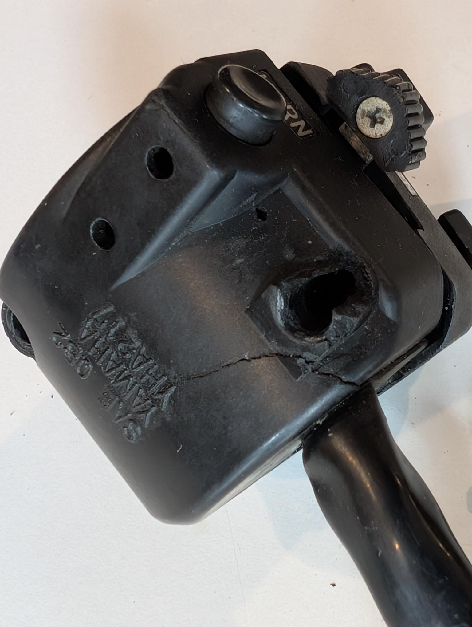 Yamaha DT175MX 2K4 Lenkerschalter links Blinkerschalter Lichtschalter Hupenschalter, gebraucht, in allgemein altersgemäßem Zustand, an einer Verschraubung ist das Gehäuse eingerissen / abgeplatzt, siehe Bilder. Daher wird der Schalter als defekt verkauft.