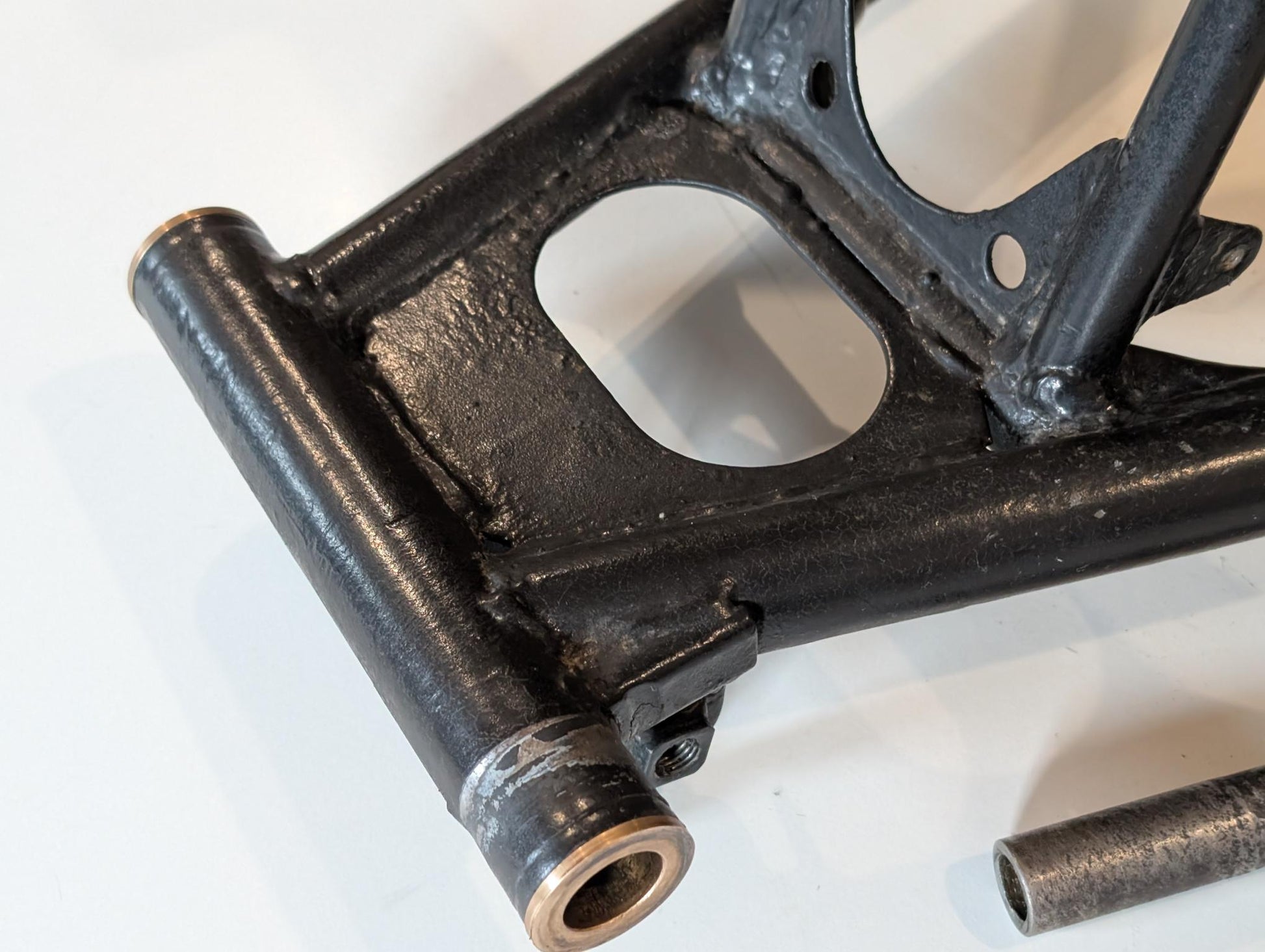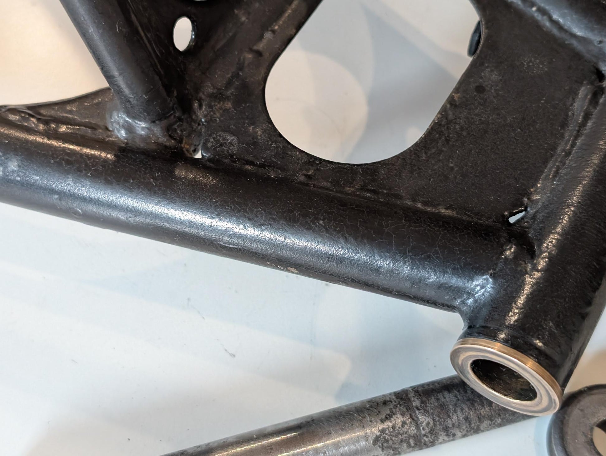 Yamaha DT175MX 2K4 Schwinge Hinterradschwinge Hinterradführung, gebraucht, in gutem altersgemäßem Zustand, wurde mal nachlackiert. Inkl. Achse und Kappen, Achsenlagerung wurd mal erneuert.