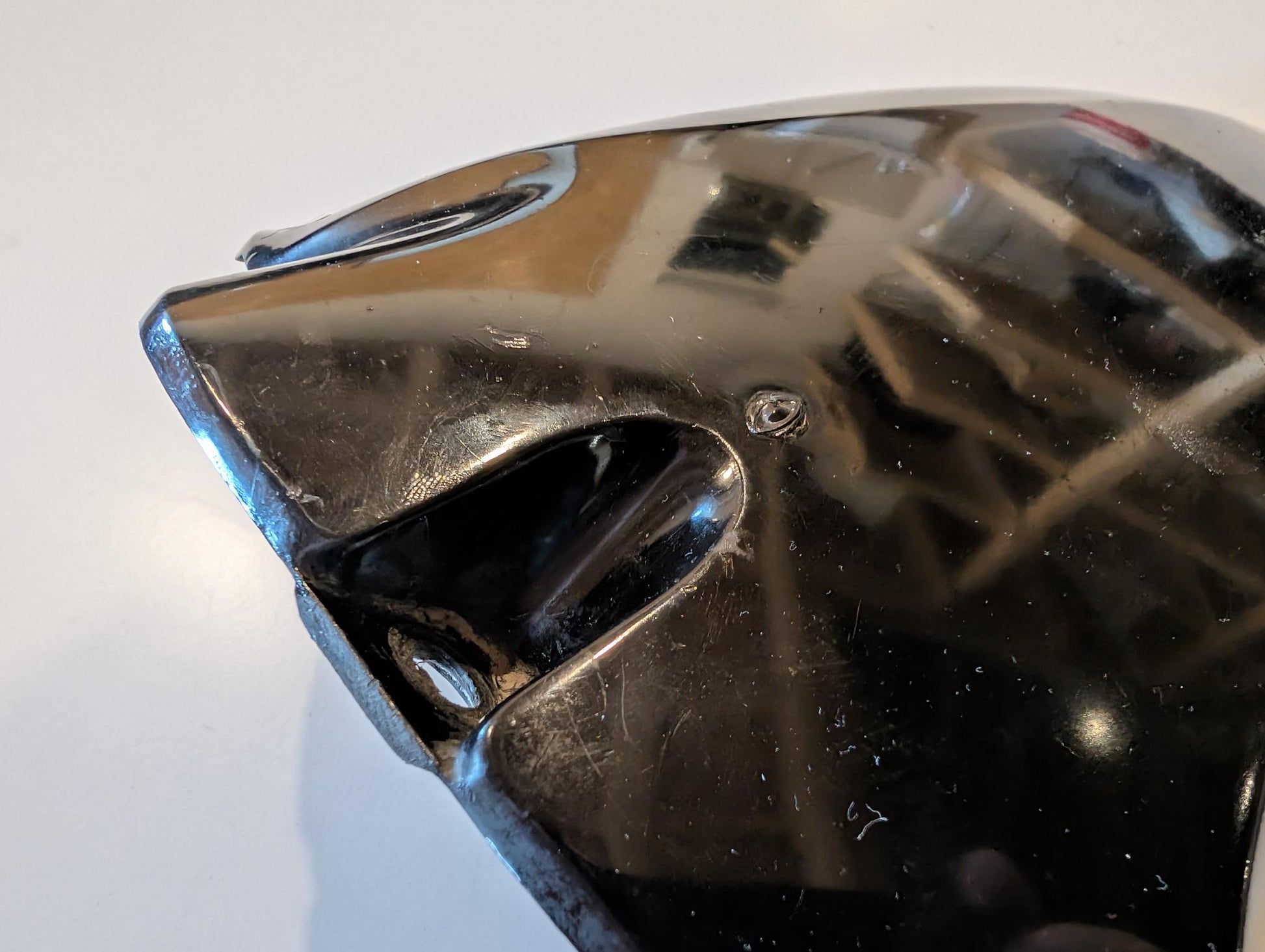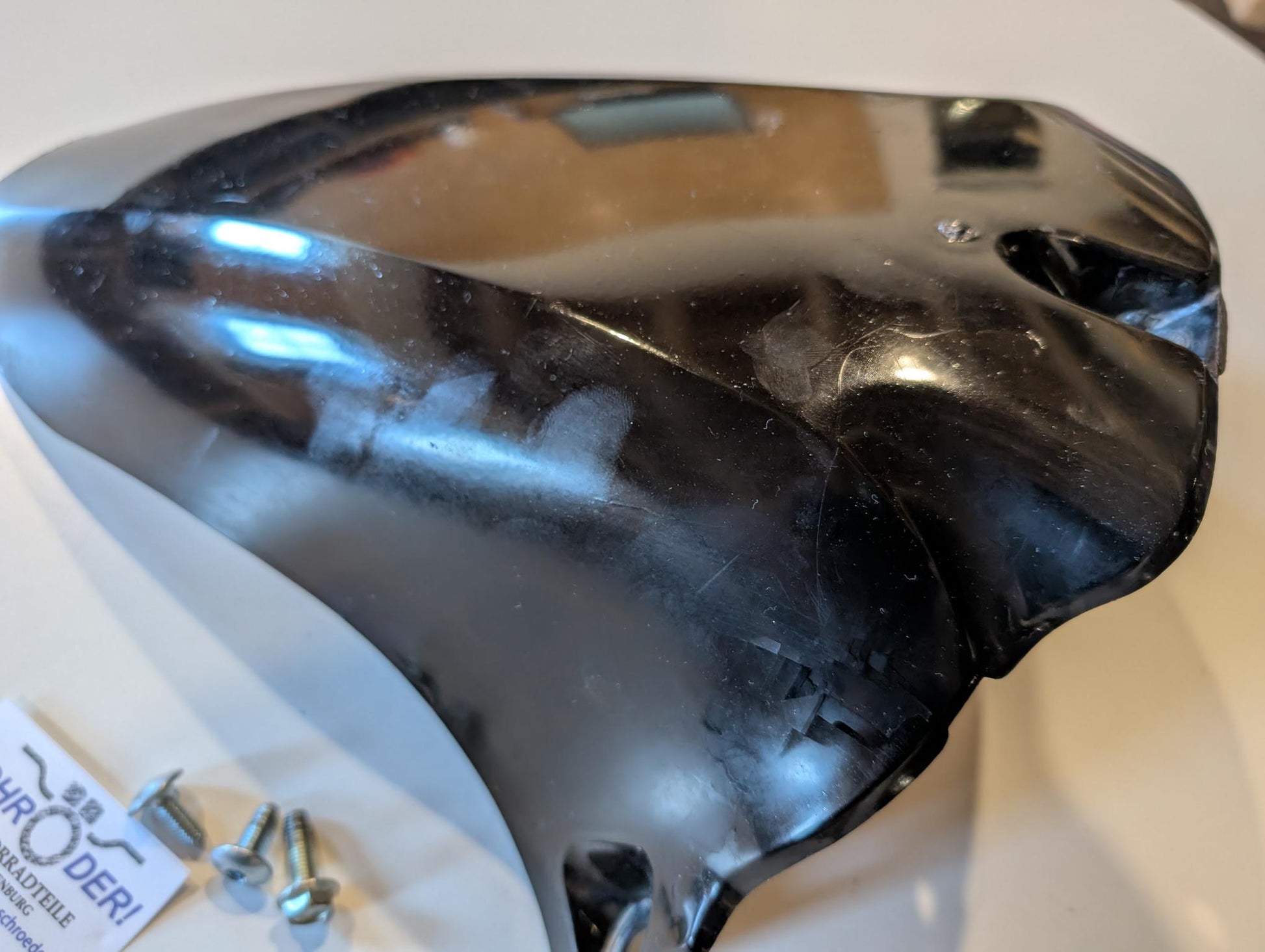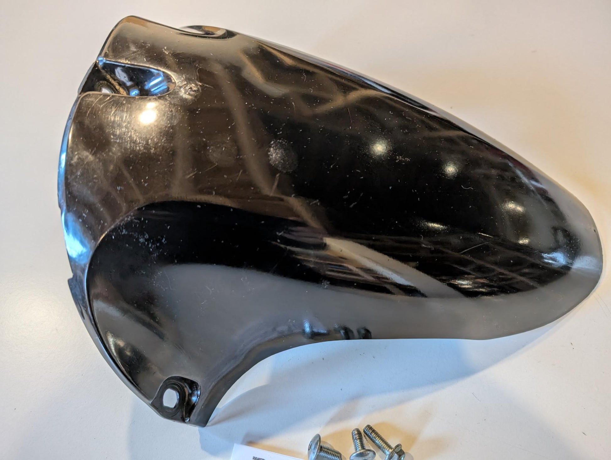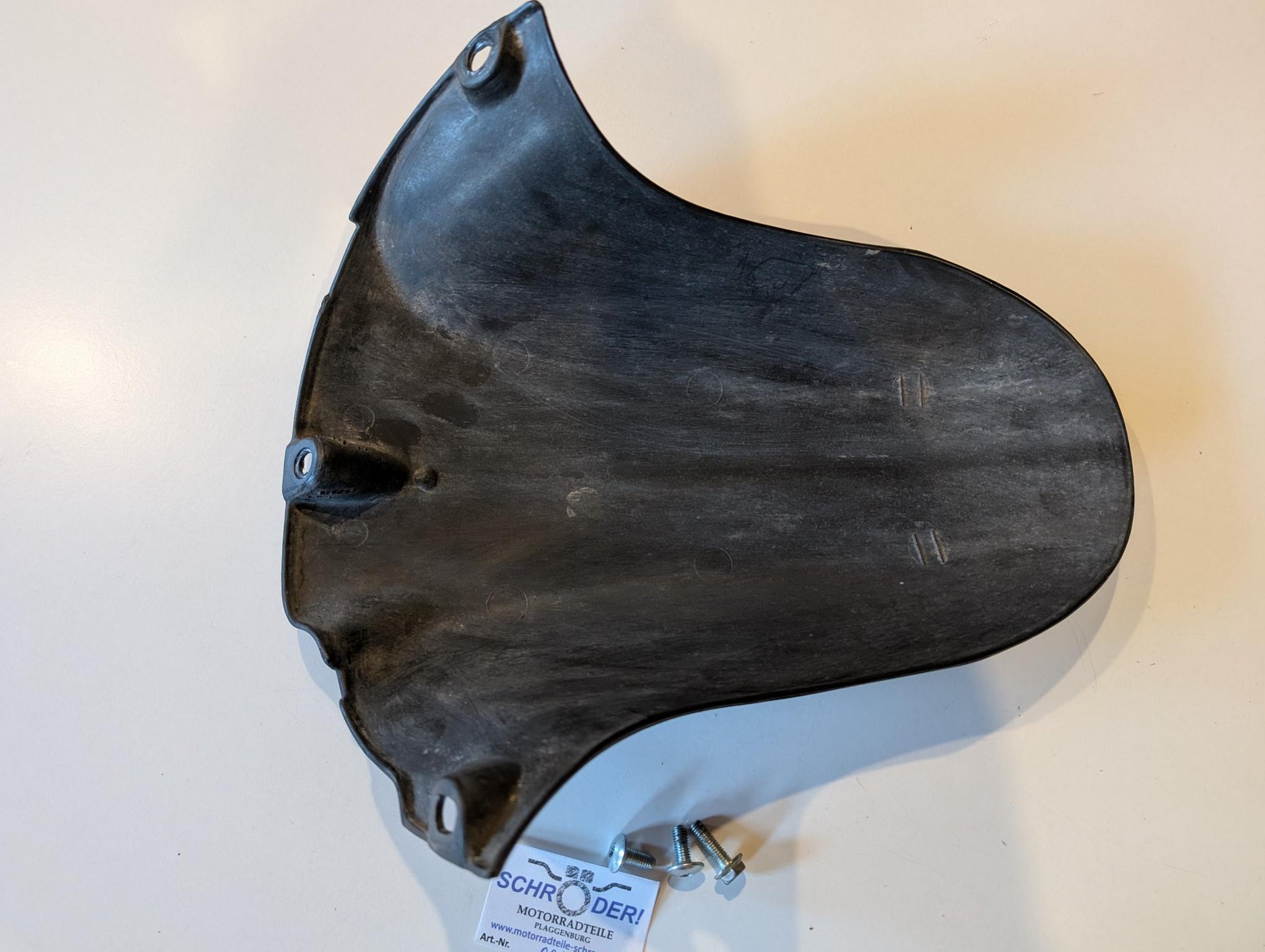 Yamaha TZR125 4FL Radabdeckung an Schwinge 3XV-21650-10, gebraucht, ohne Risse aber oberseitig nicht wirklich gut lackiert, Gebrauchsspuren siehe Fotos.