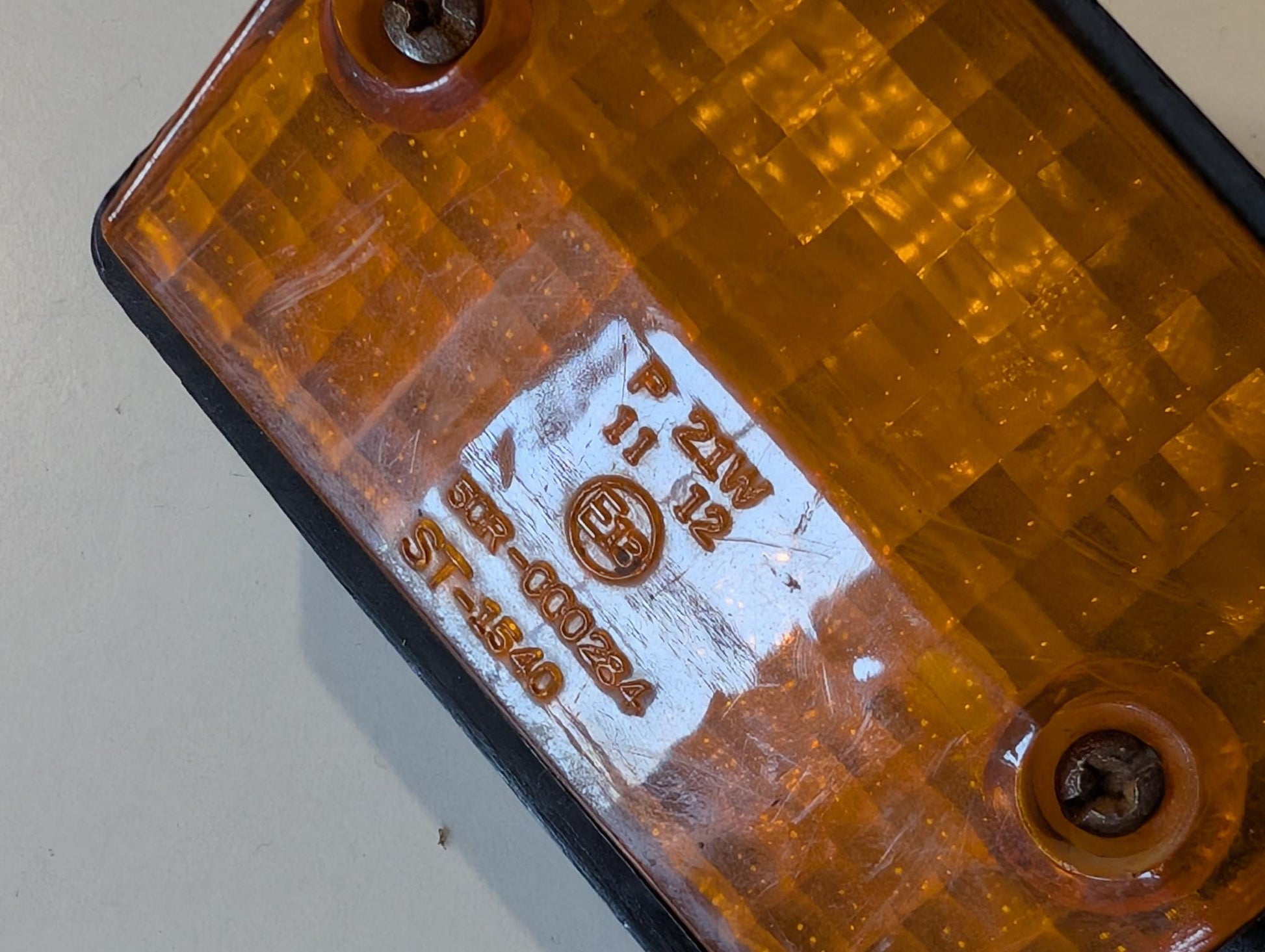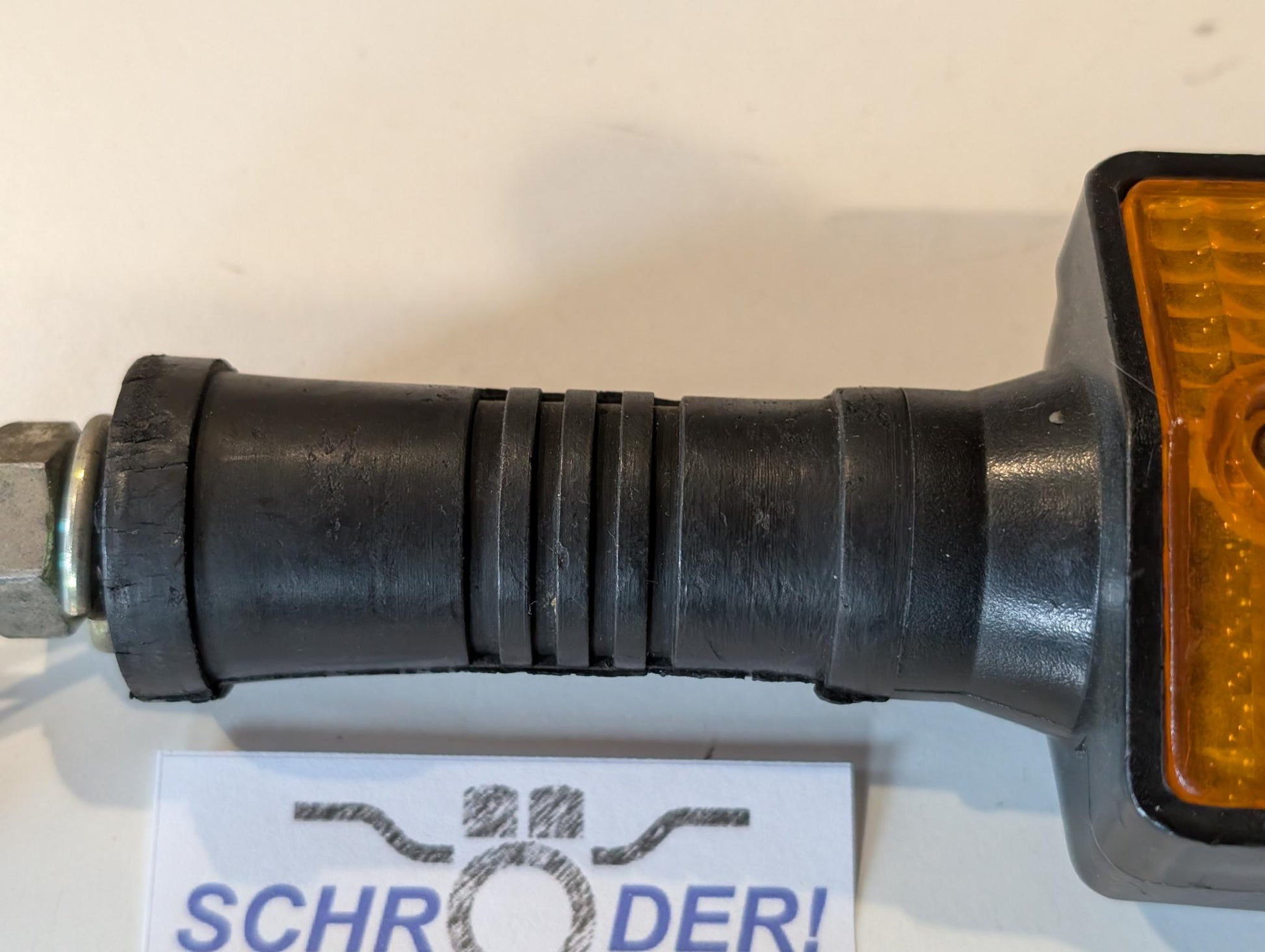 Yamaha XT600 43F Blinker gebraucht, in altersgemäßem Zustand, siehe Bilder. Blinkergläser wurden über die Jahre gerne mal ausgetauscht, auch gegen Zubehörartikel. Bitte prüfen, ob das Blinkerglas zu den übrigen Gläsern der Blinker Ihres Motorrades passt, da das Design und die Farbe variieren können! Ebenso bitte die Länge des Auslegers beachten, hier gibt es den Kurzen und Langen, dieser hier ist der Lange! Gebrauchsspuren, Risse etc. siehe Fotos. Leuchte funktioniert.