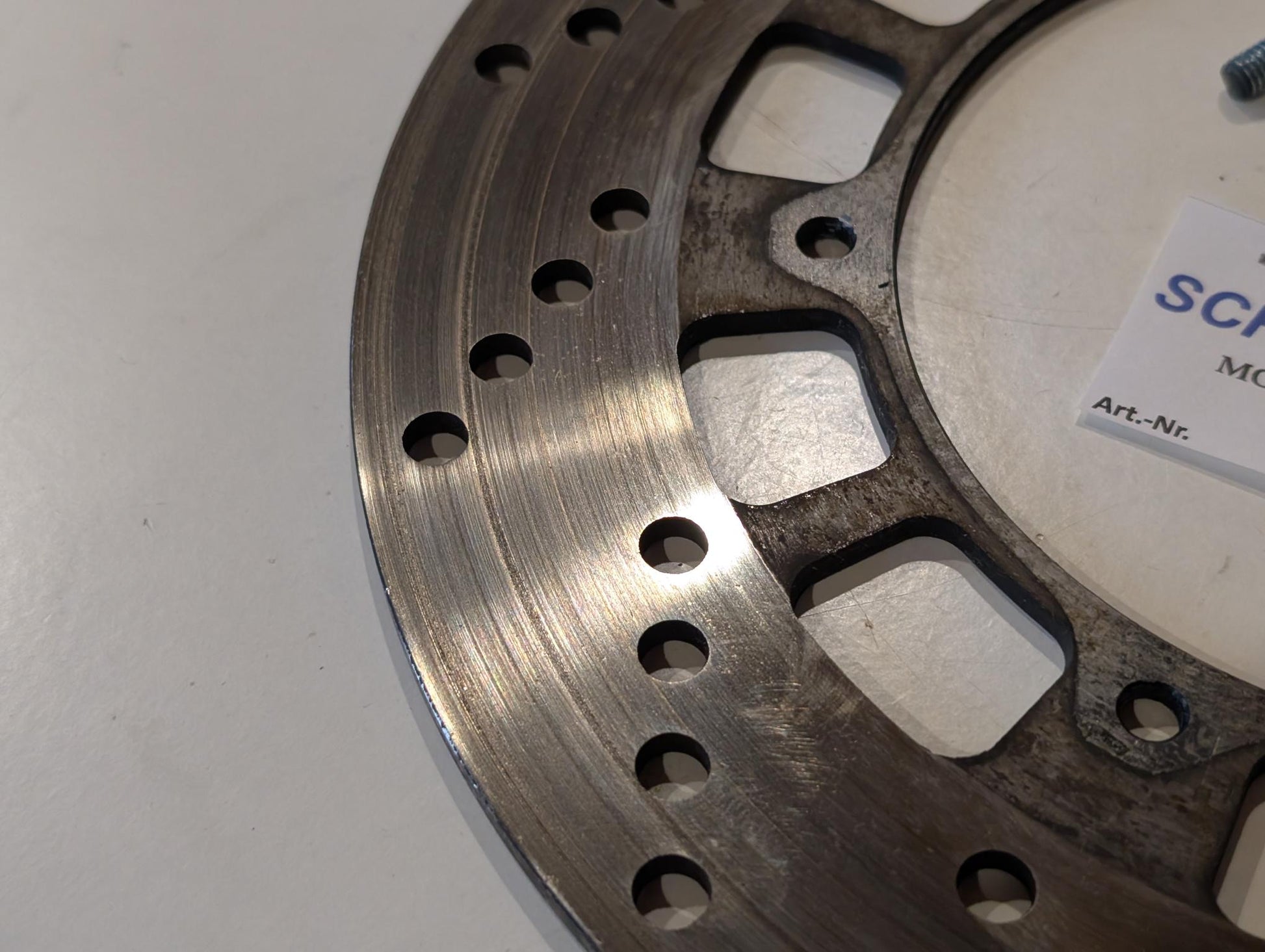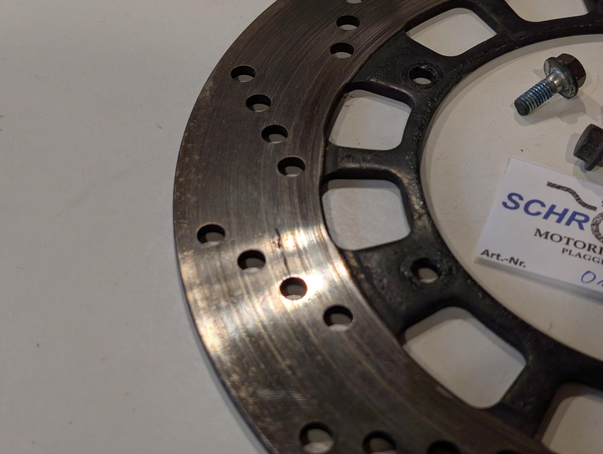 Yamaha XT600 43F Bremsscheibe vorne 43F-25831-00 gebraucht, in gutem bis sehr gutem Zustand, minimale Riefen, Aussen-Randmaß gleich Innenmaß, somit kaum Verschleiß, siehe Fotos.