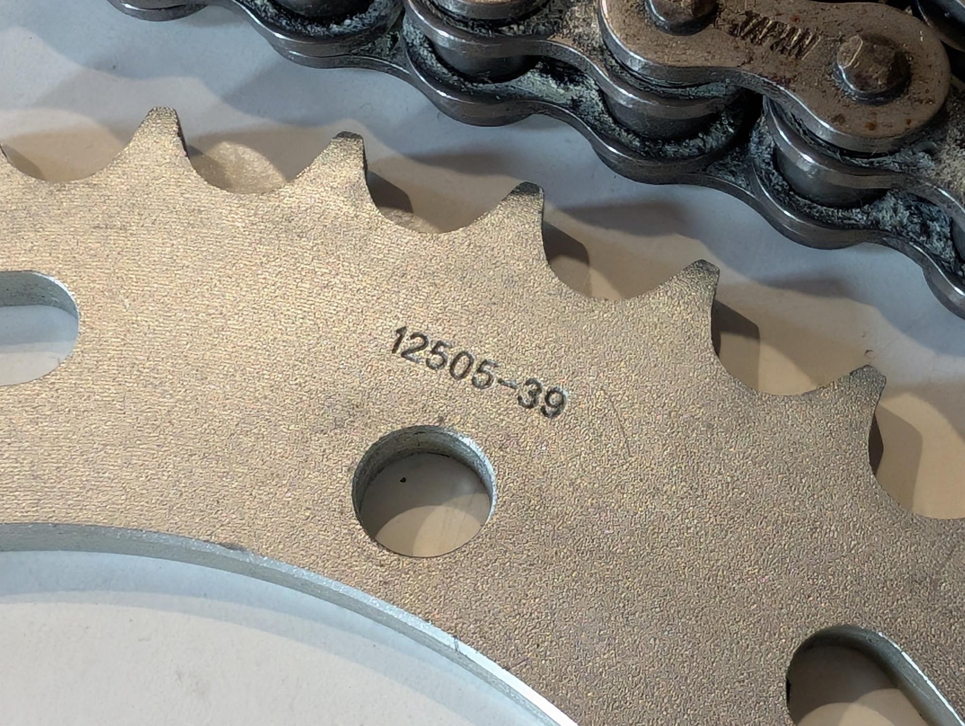 Yamaha XT600 43F D.I.D. O-Ring Kette 520VM und Kettenrad von AFAM 39 Zähne gebraucht, in insgesamt gutem altersgemäßem Zustand, ohne Kettenschloss, da dieses sowiese erneuert werden sollte, und ohne Ritzel. Bestandsritzel hatte 15 Zähne, wurde aber separat vergeben. Geringer Verschleiß, leichte Korrosionsansätze siehe Bilder.