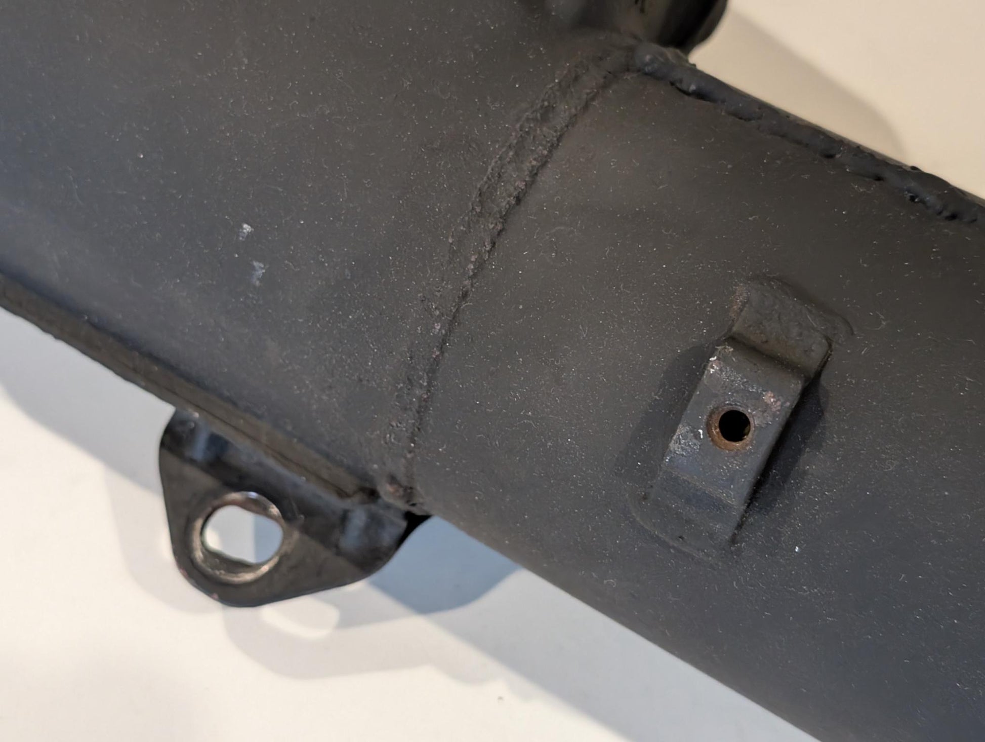 Yamaha XT600 43F Endschalldämpfer 34L-14711-00 gebraucht, wird als defekt verkauft, da er geöffnet wurde, mehrfach geschweißt wurde und wahrscheinlich innen auch ausgeräumt wurde, Schalldämpfereinsatz wurde mit Schalldämpfer verschweißt, Yamaha Original Nummer nicht mehr erkennbar, wurde überlackiert, hat Rostansätze unter Lack. Somit im Straßenverkehr nicht mehr verwendbar und nicht zugelassen!!