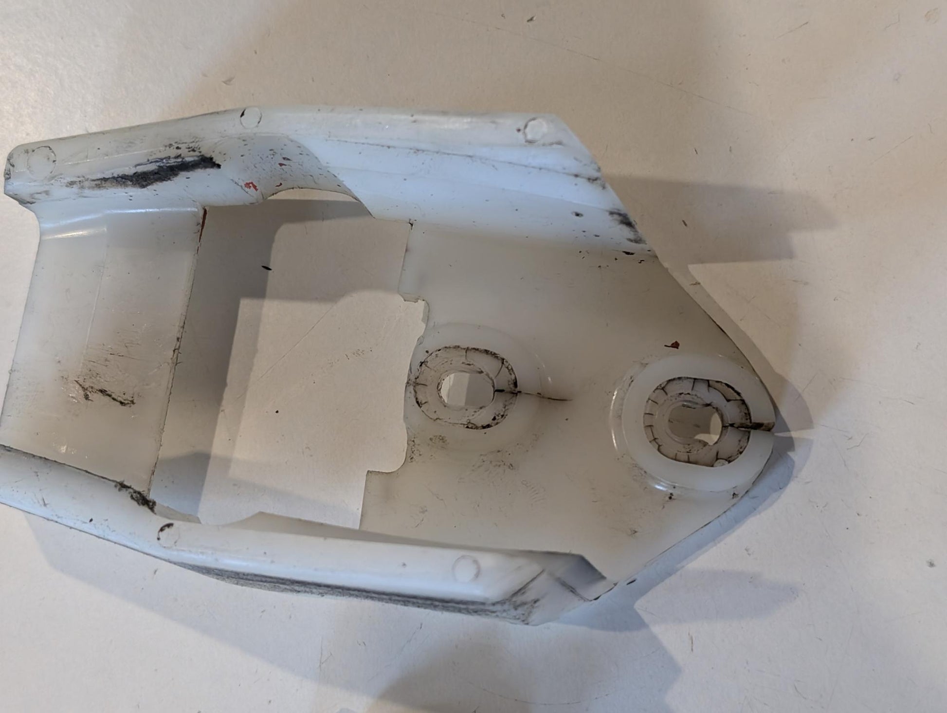 Yamaha XT600 43F Kettenführung 34L-22147-00 Kettenschutz Schwinge gebraucht, in insgesamt gutem altersgemäßem Zustand, allerdings sind beide Schraublöcher angerissen, siehe Fotos.