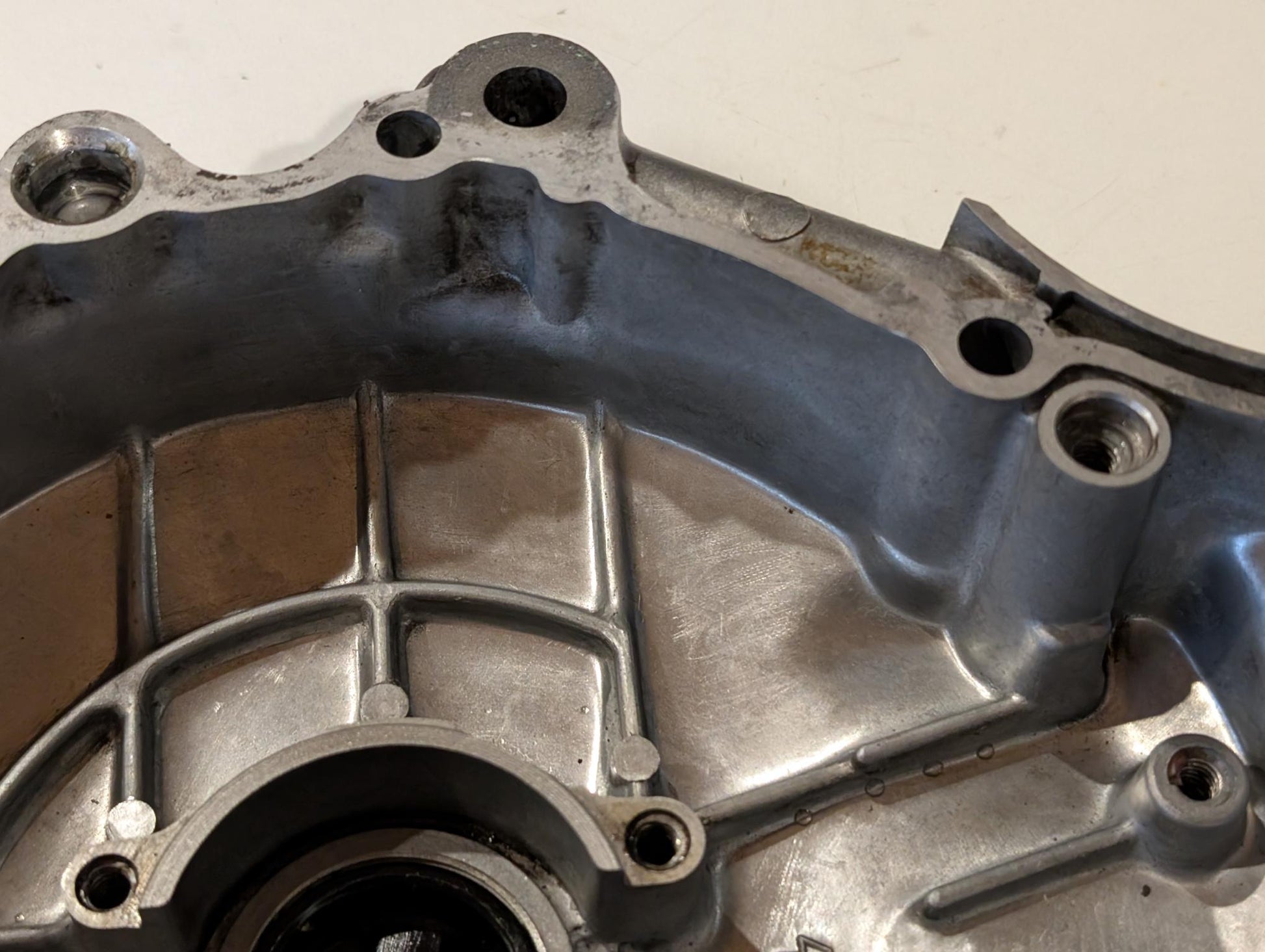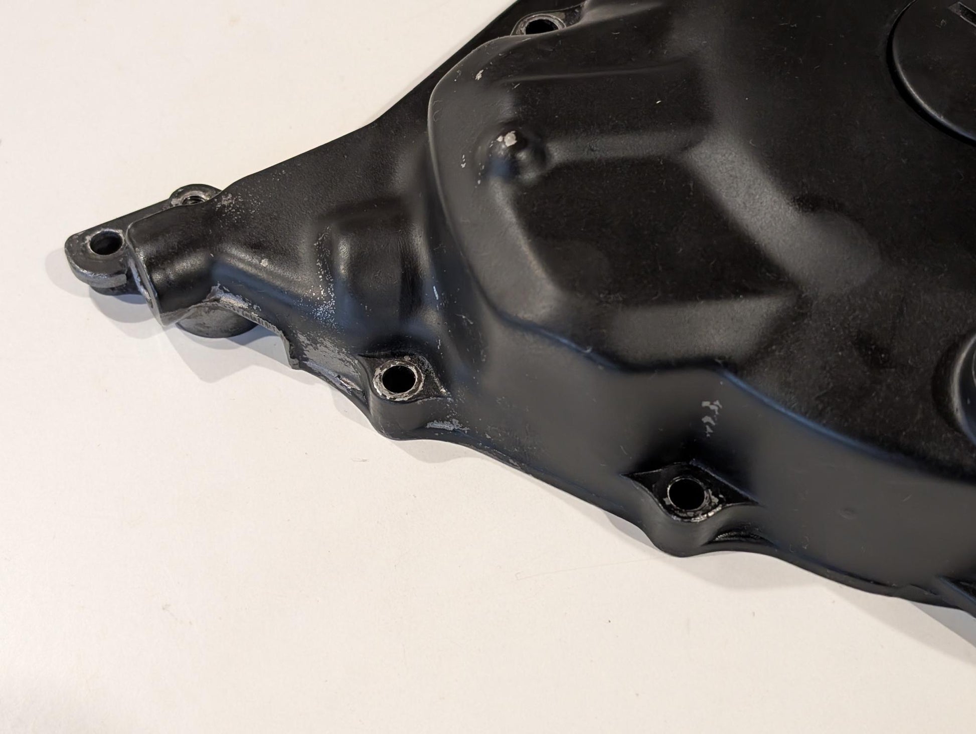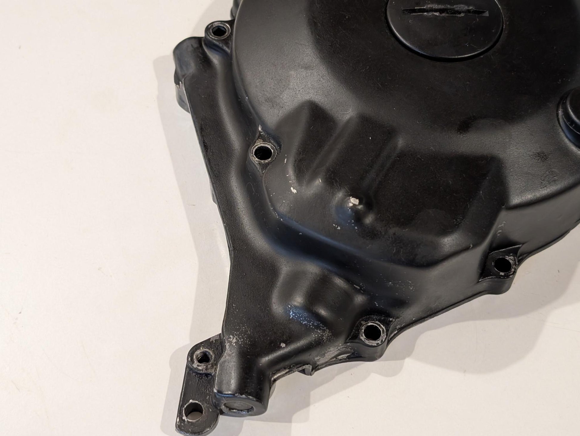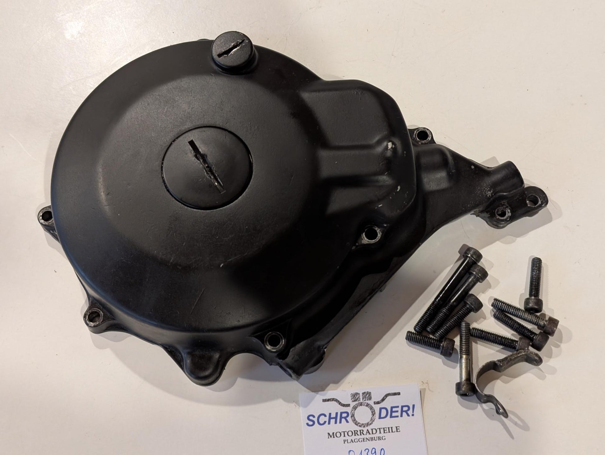 Yamaha XT600 43F Kurbelgehäusedeckel Lichtmachinendeckel 34K-15411-00 gebraucht, in gutem altersgemäßem Zustand, wurde schwarz-matt umlackiert, Originalfarbe der späteren Deckel vermutlich in grau-metallic siehe Bilder. Schraubdeckel wurden nicht geöffnet, können aber wie gewöhnlich sehr fest sein! Zustand siehe Fotos. Inkl. der beiliegenden Schrauben.
