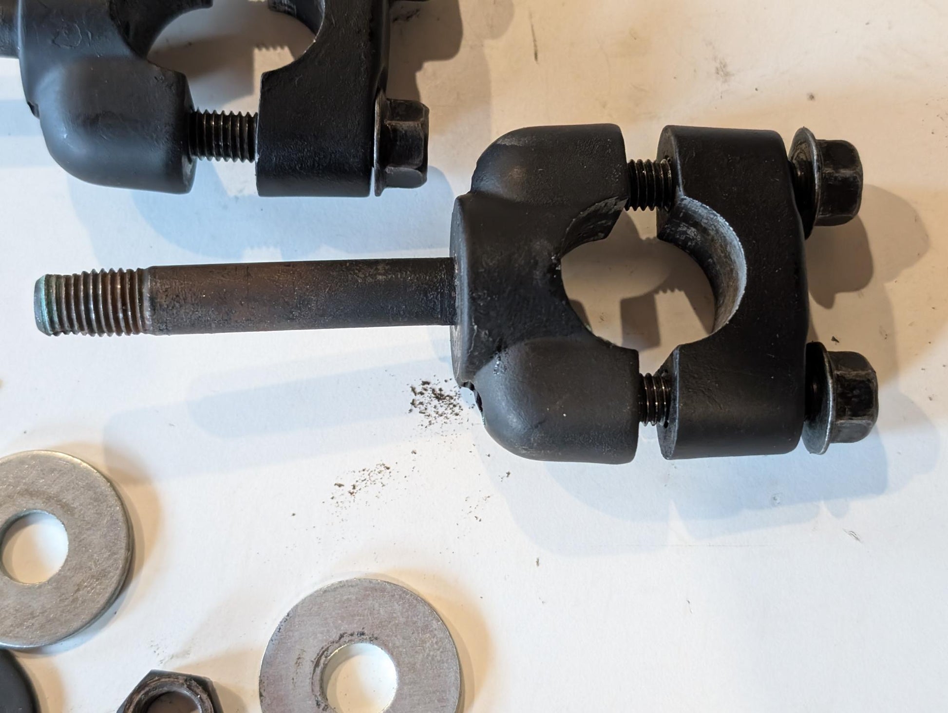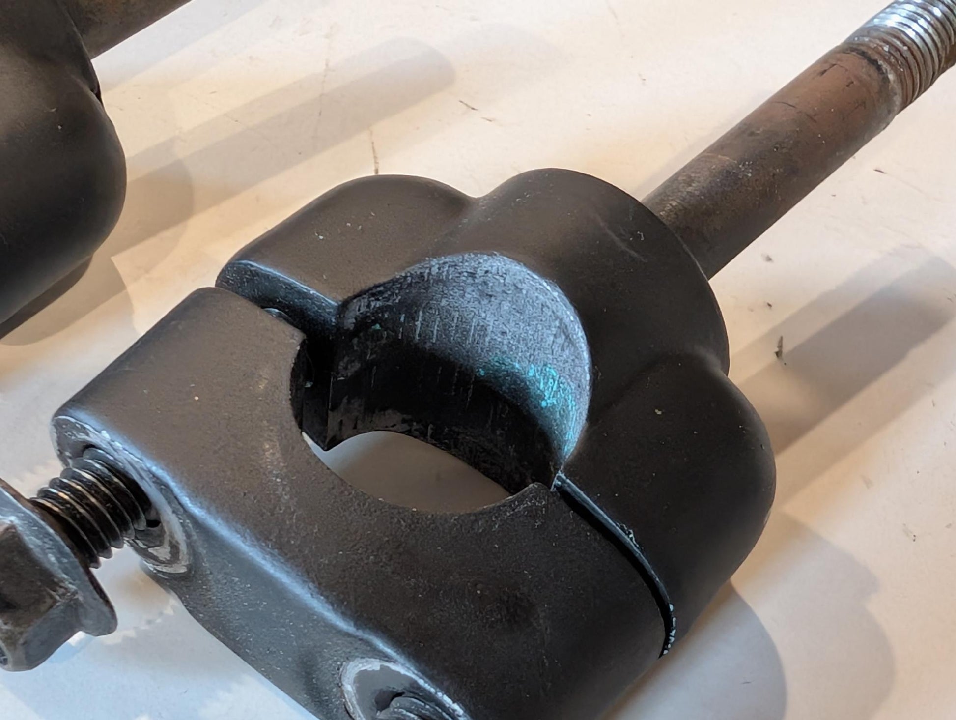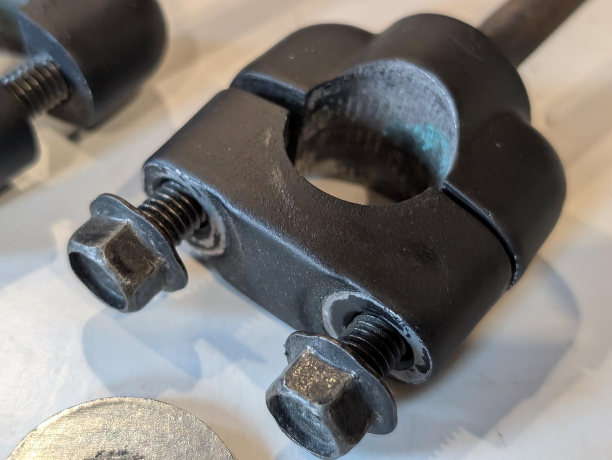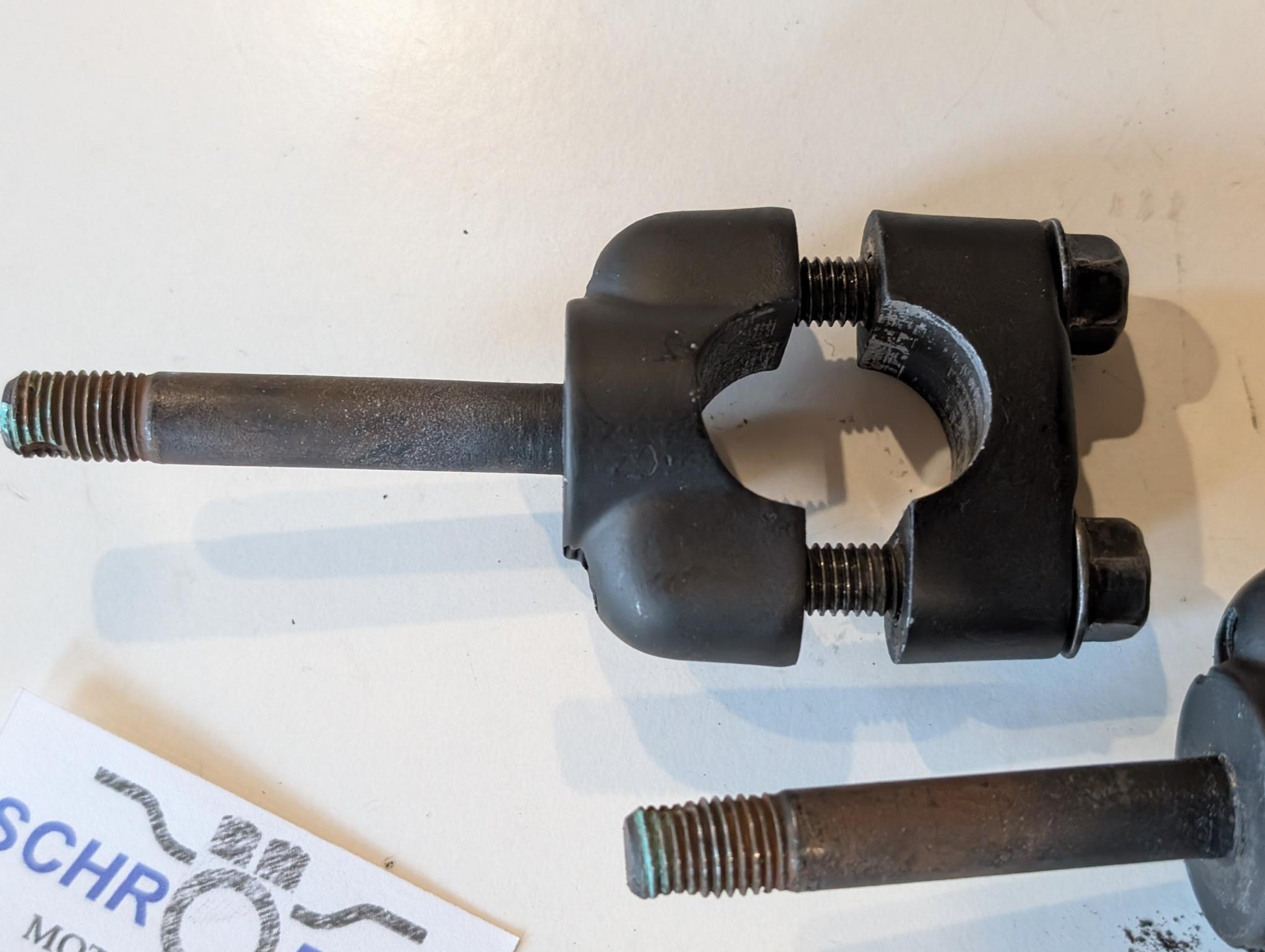 Yamaha XT600 43F Lenkerhalter 1E6-23441-00 3Y6-23442-00-98 Schraube 95826-08035 gebraucht, in gutem altersgemäßem Zustand, wurden matt schwarz nachlackiert, siehe Fotos.