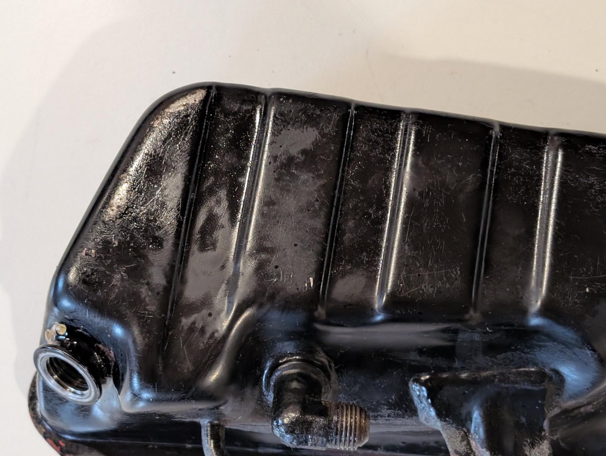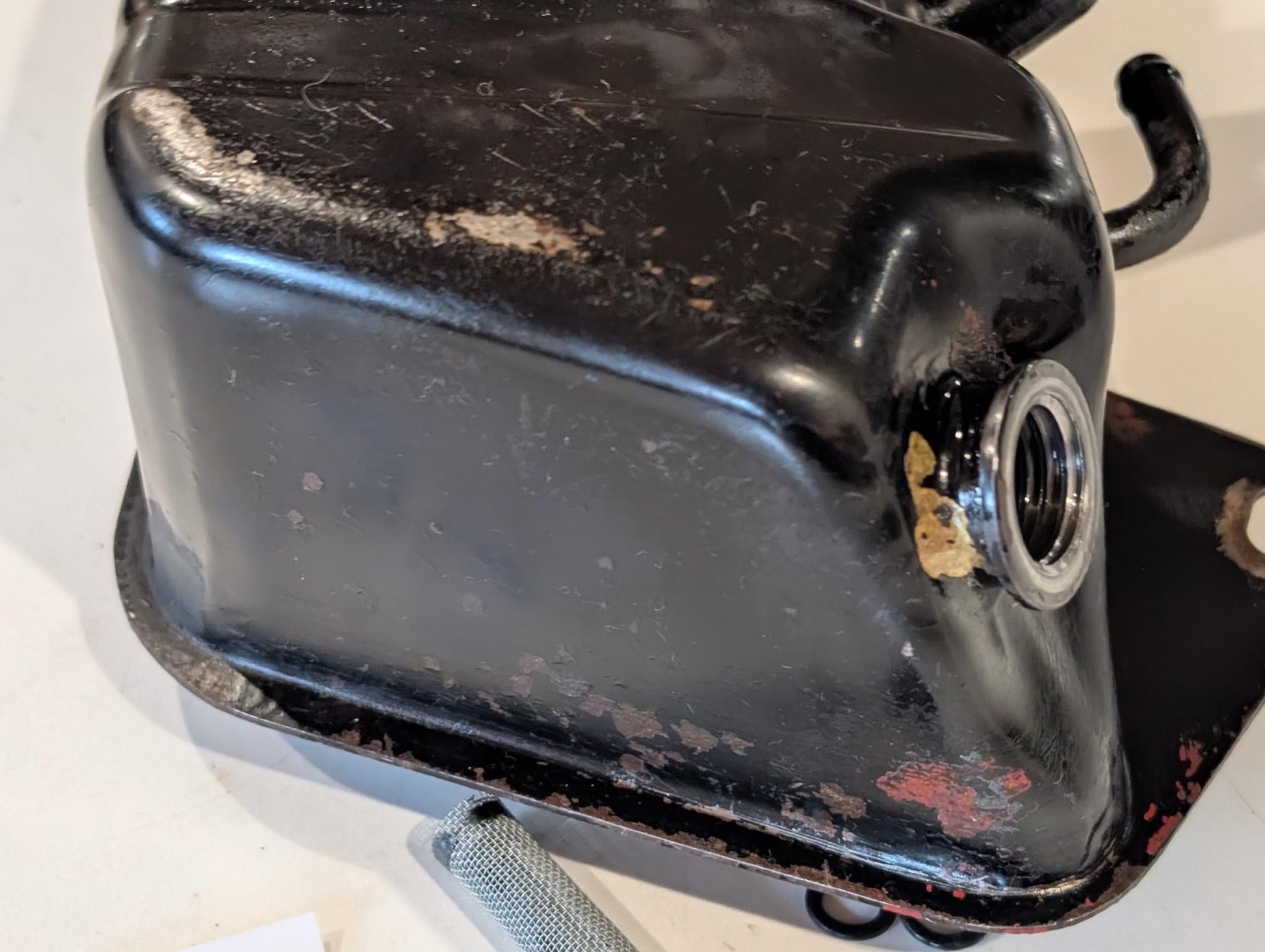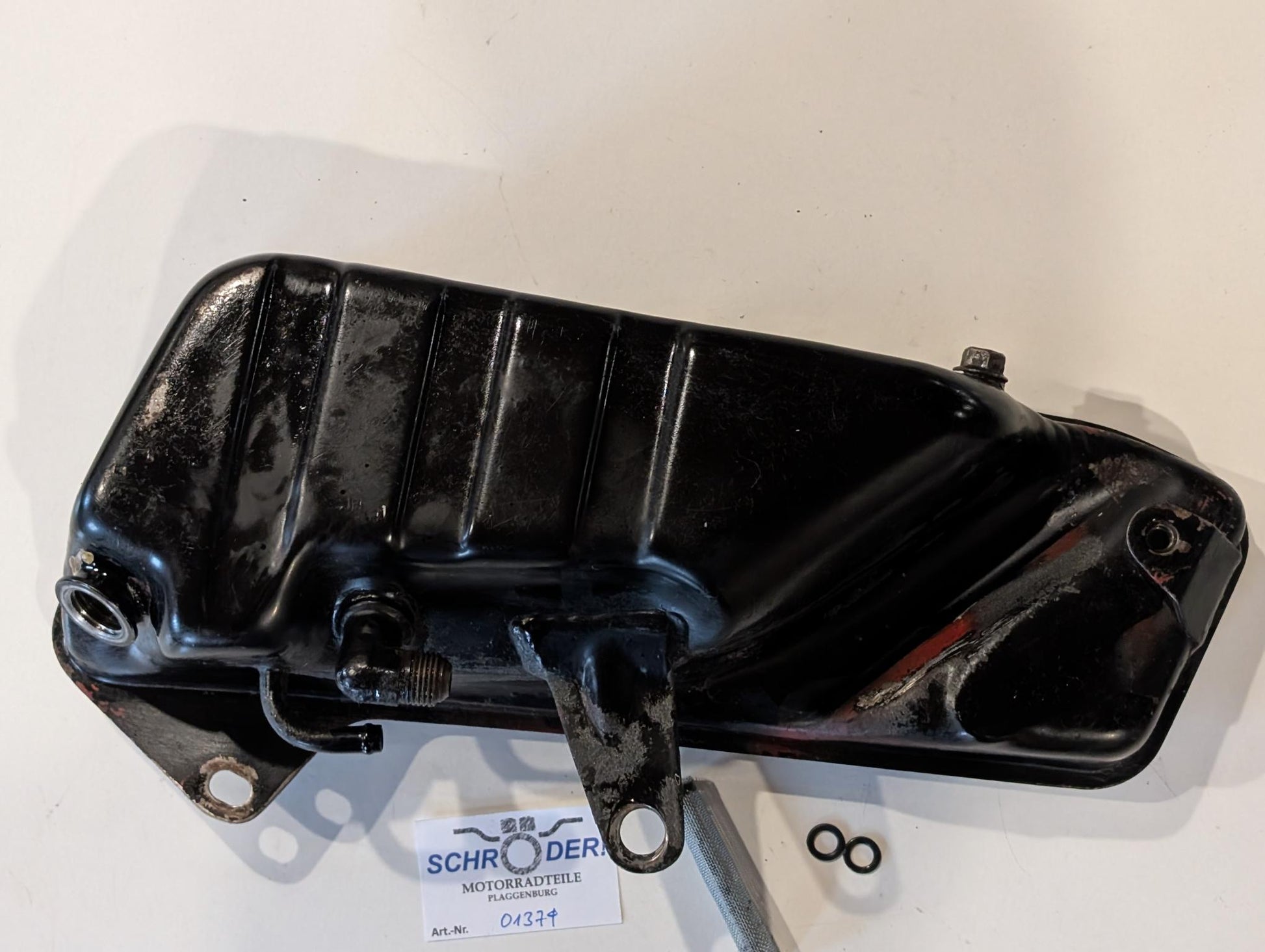 Yamaha XT600 43F Öltank mit Sieb 34L-21750 gebraucht, in altersgemäßem Zustand, wurde sicher mal nachlackiert, rückseitig verbeult, natürlich normale Gebrauchsspuren, muss auf jeden Fall innen feingereinigt werden! Allgemeiner Zustand siehe Bilder, Tank ist dicht.