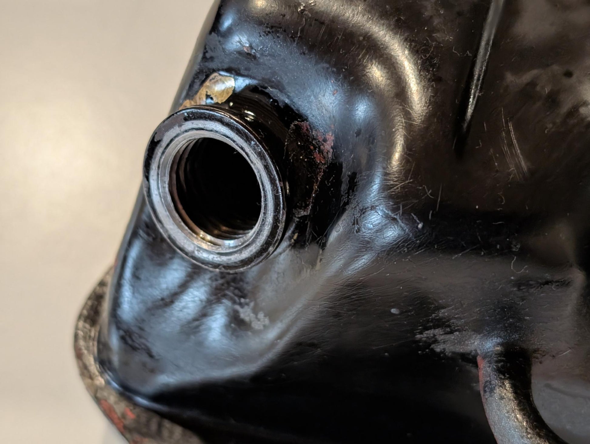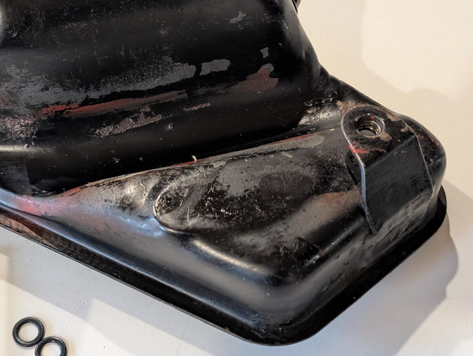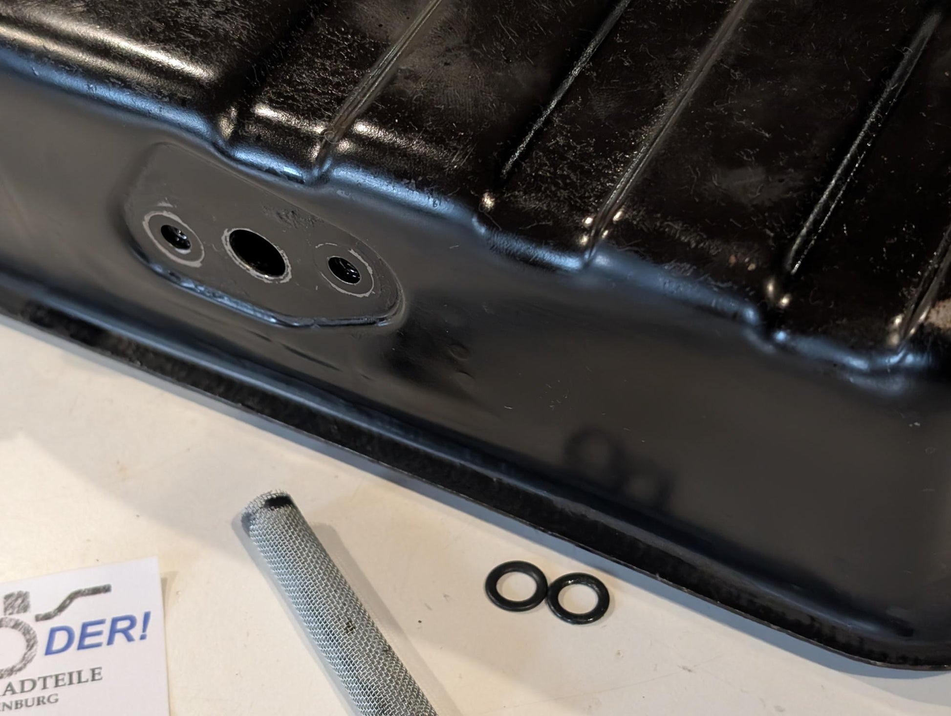 Yamaha XT600 43F Öltank mit Sieb 34L-21750 gebraucht, in altersgemäßem Zustand, wurde sicher mal nachlackiert, rückseitig verbeult, natürlich normale Gebrauchsspuren, muss auf jeden Fall innen feingereinigt werden! Allgemeiner Zustand siehe Bilder, Tank ist dicht.
