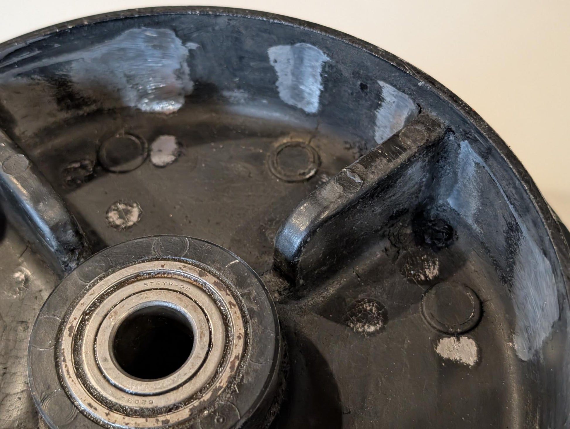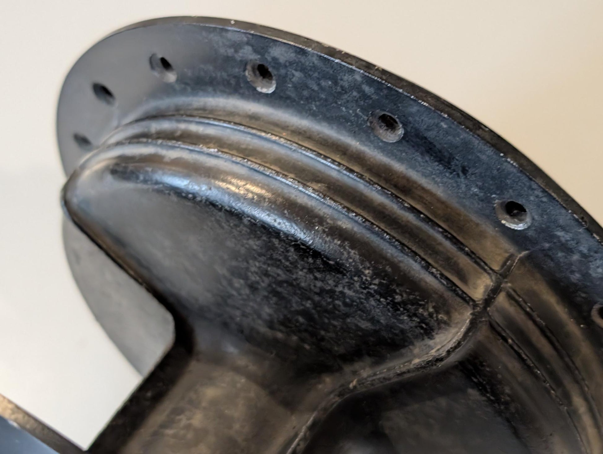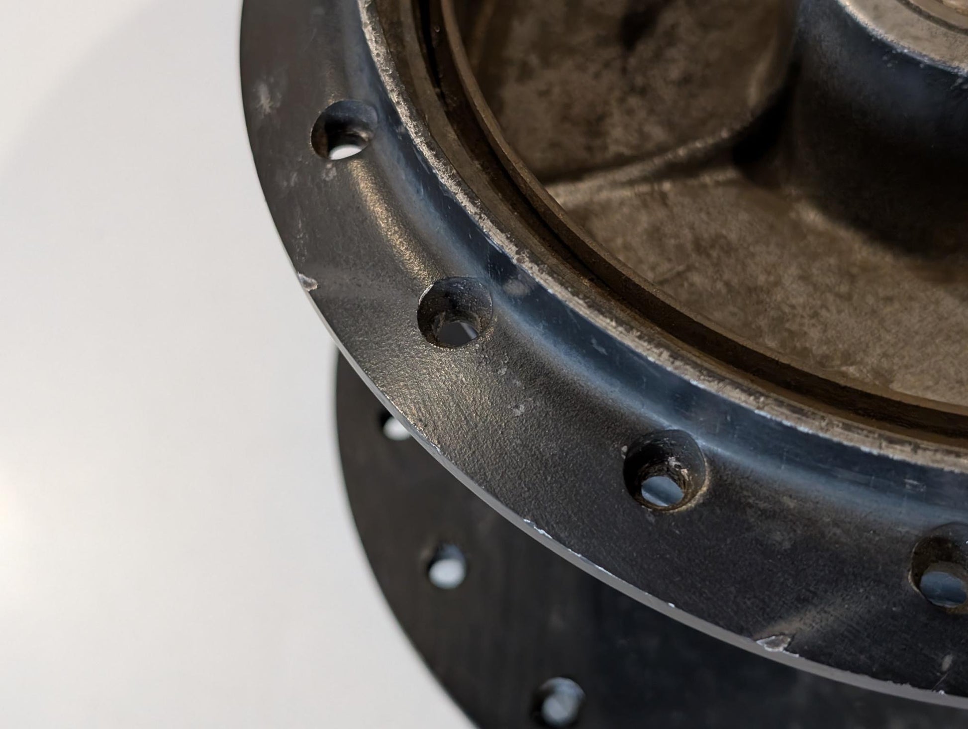 Yamaha XT600 43F Radnabe hinten Bremstrommel 5Y1-25311-00 gebraucht, in insgesamt gutem altersgemäßem Zustand, siehe Fotos. Bremsfläche noch in Ordnung, Lager fühlen sich gut an.