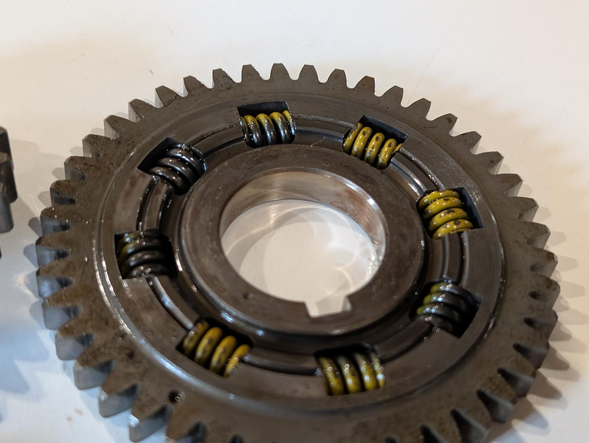 Yamaha XT600 43F Zahnrad Primärantrieb 34K-11536-01 Antriebsrad Ausgleichswelle 34K-16111-00 gebraucht, in altersgemäßem Zustand, siehe Fotos. Verschleißerscheinungen an den Zahnradseiten siehe Fotos, Zähne selber sind gut.