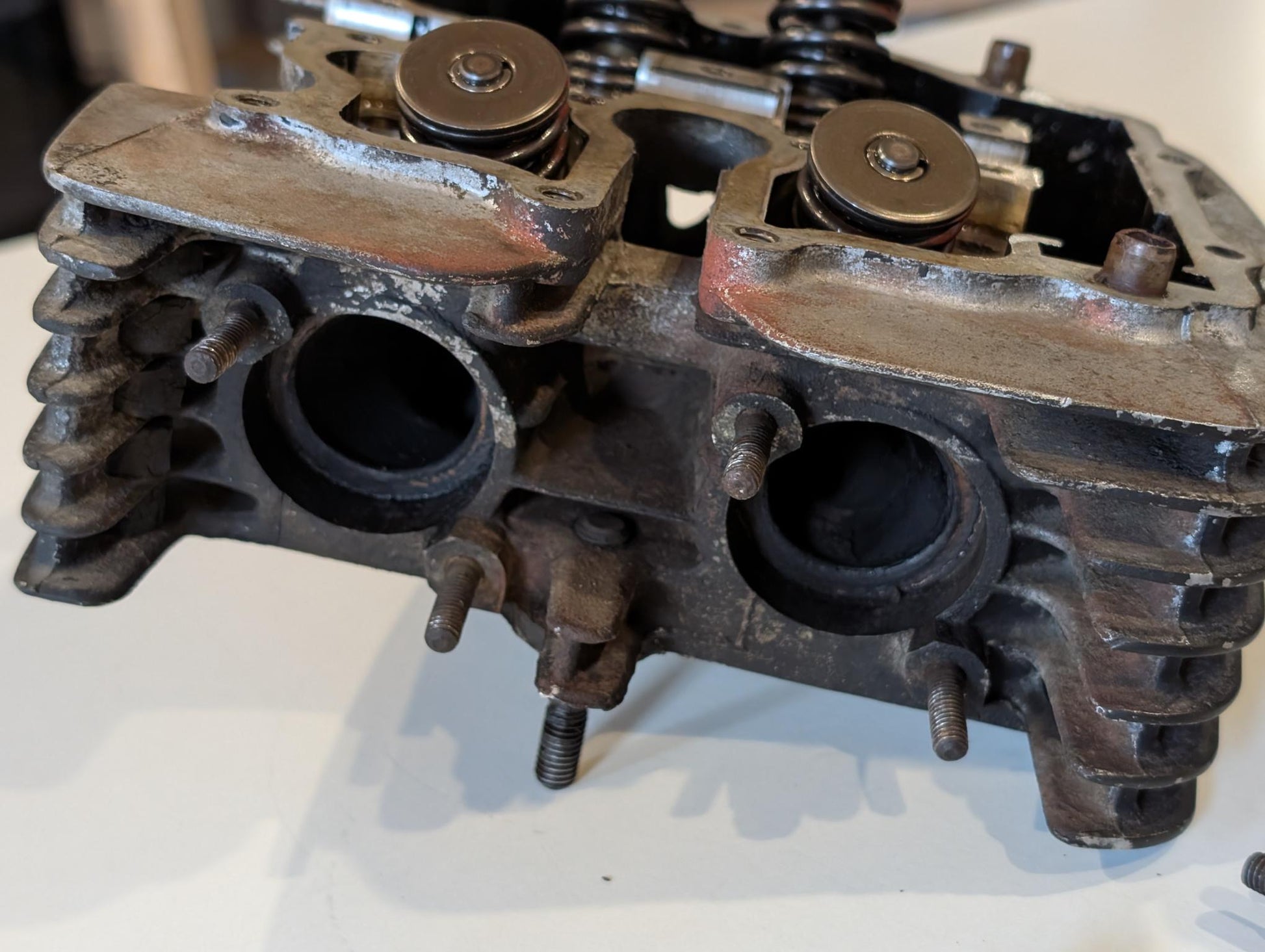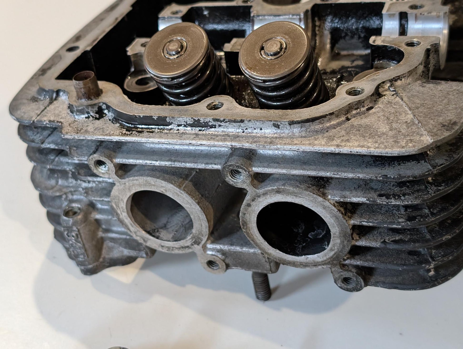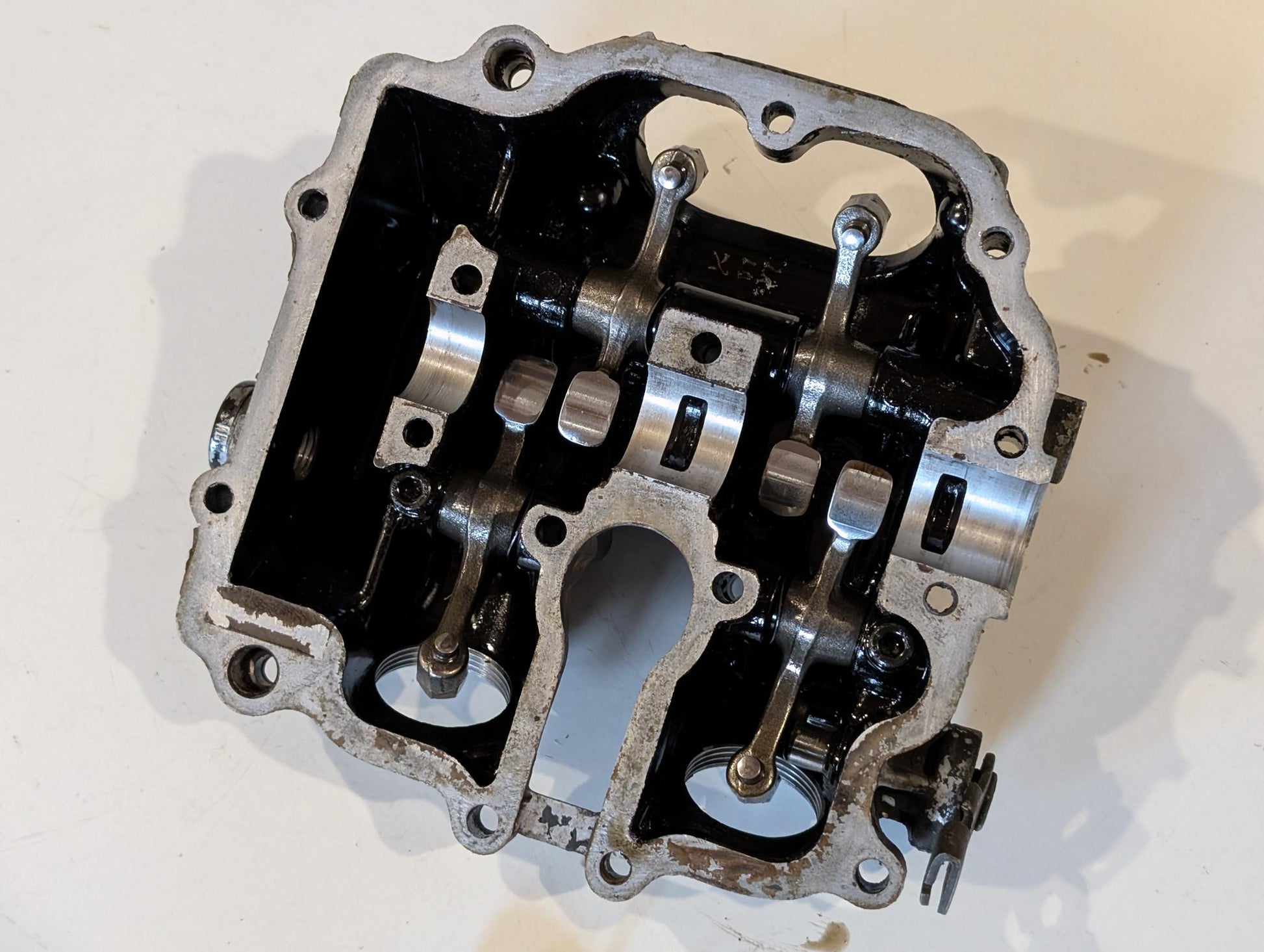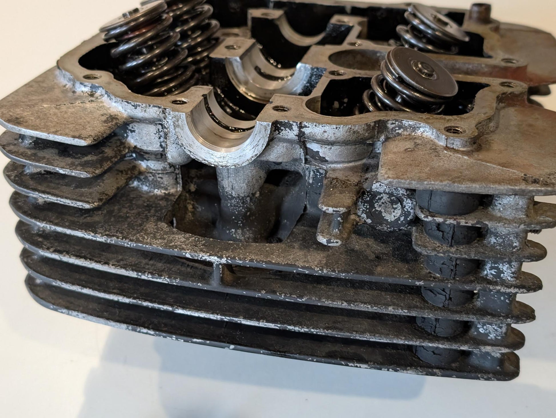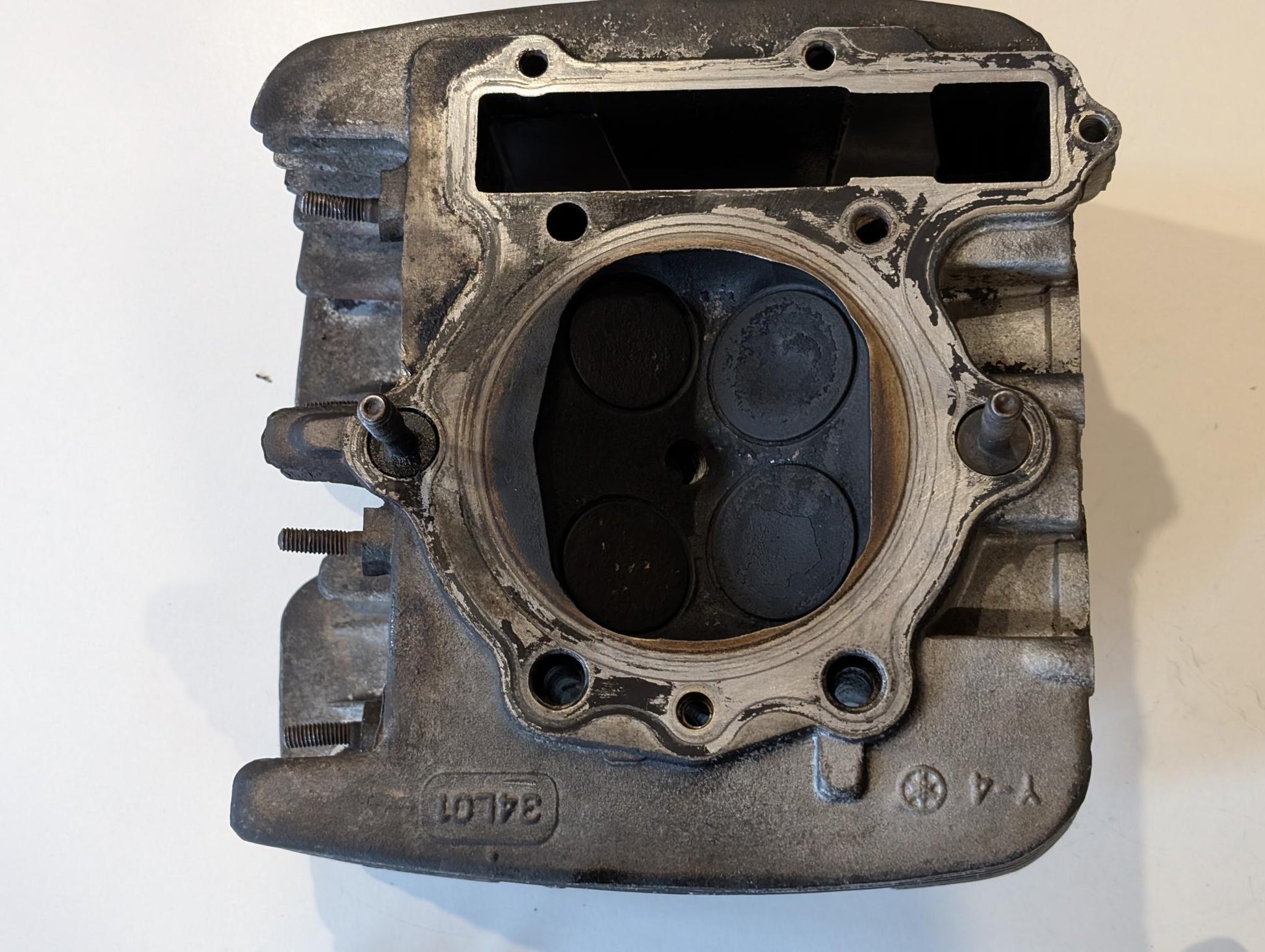 Yamaha XT600 43F Zylinderkopf 34L-11101 mit Deckel und Schrauben gebraucht, in altersgemäßem Zustand, Kopf und Deckel sind nummerngleich, sollte im Zuge des Umbaus auf jeden Fall überholt werden, also Ventilschaftdichtungen erneuern, Ventile einschleifen, feinstreinigen etc. Zustand und Lieferumfang siehe Fotos.