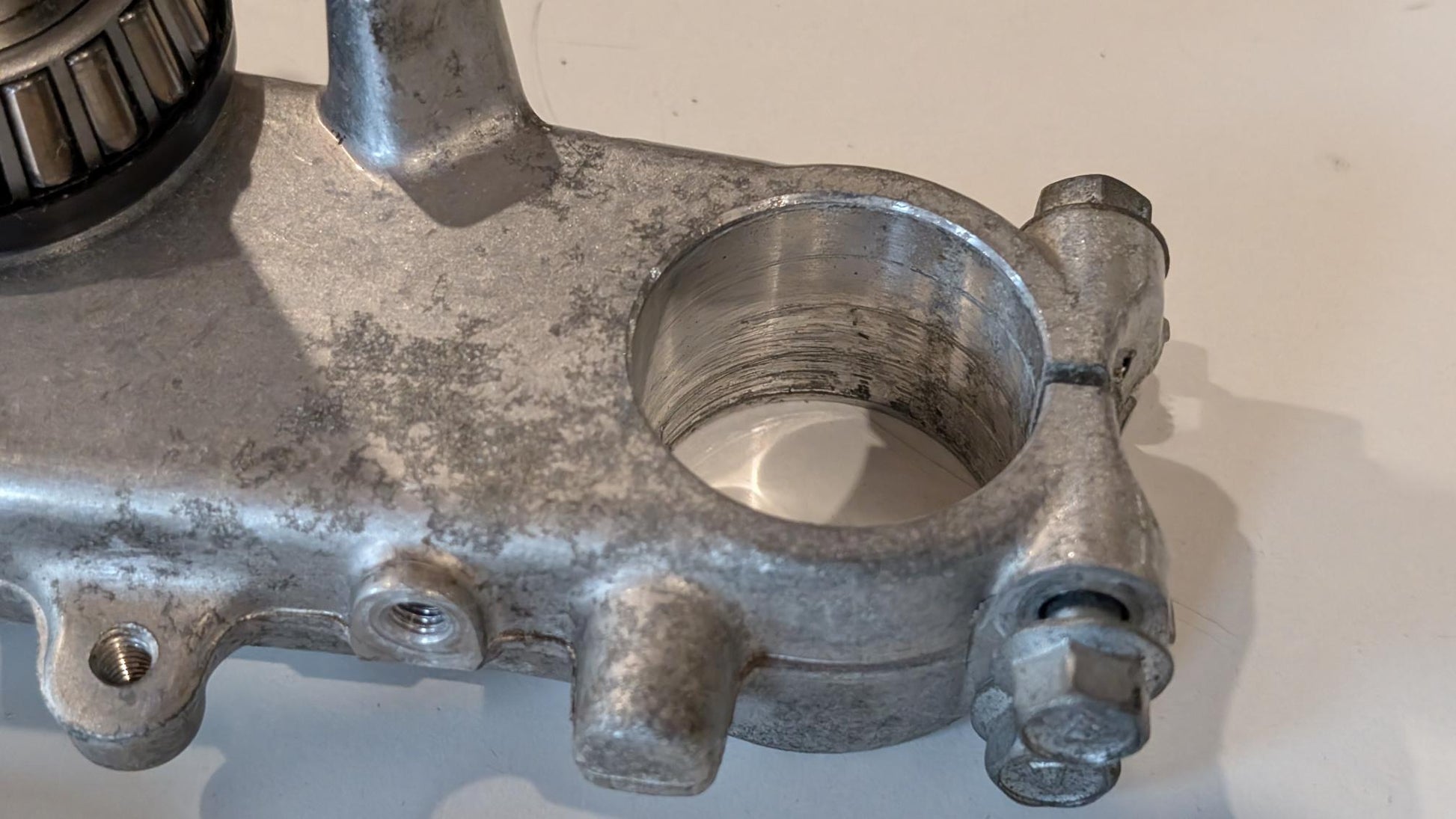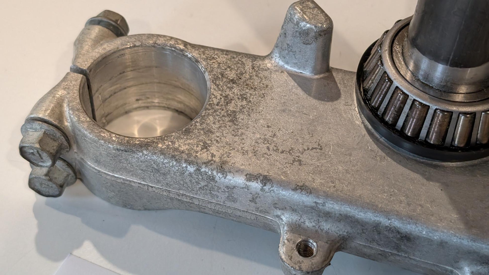 Yamaha XT600E 3TB 3UW Gabelbrücke Konsole Unterteil 3TB-23340-00 mit Lagern gebraucht, in gutem bis sehr gutem Zustand, kleine Delle an der Kappe, siehe Fotos.
