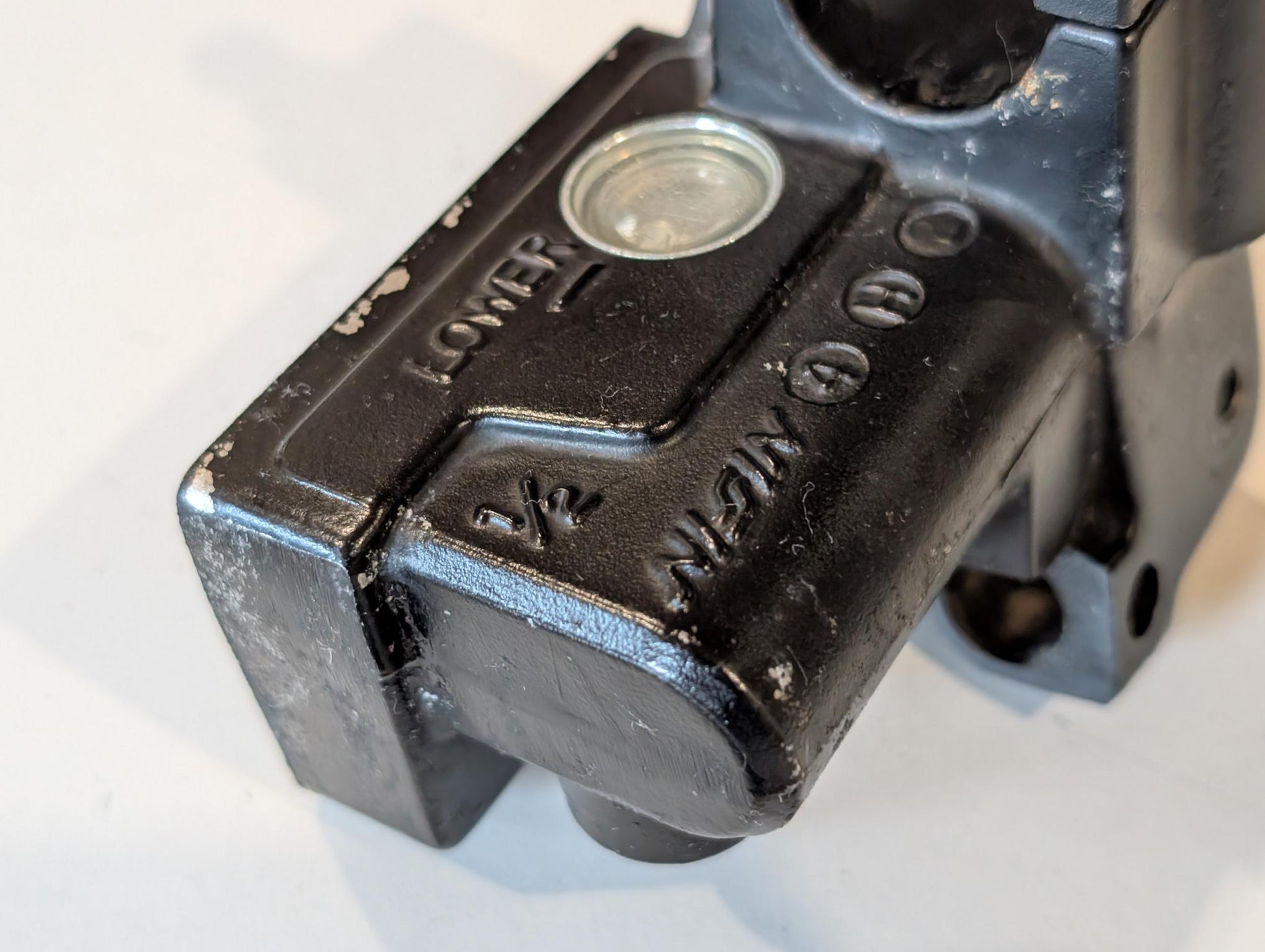 Yamaha XT600E 3TB 3UW Hauptbremszylinder 3TB-25870-00 Handbremszylinder Bremspumpe vorne gebraucht, in gutem altersgemäßem Zustand, siehe Bilder. Durch einen Sturz ist eine Ecke abgeschürft, 90% am Deckel, 10% am Gehäuse, siehe Fotos. Funktionierte bis Ausbau. Lieferumgang gem. Bildern.