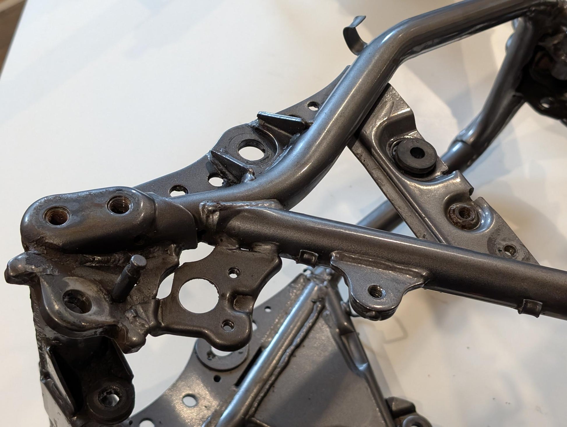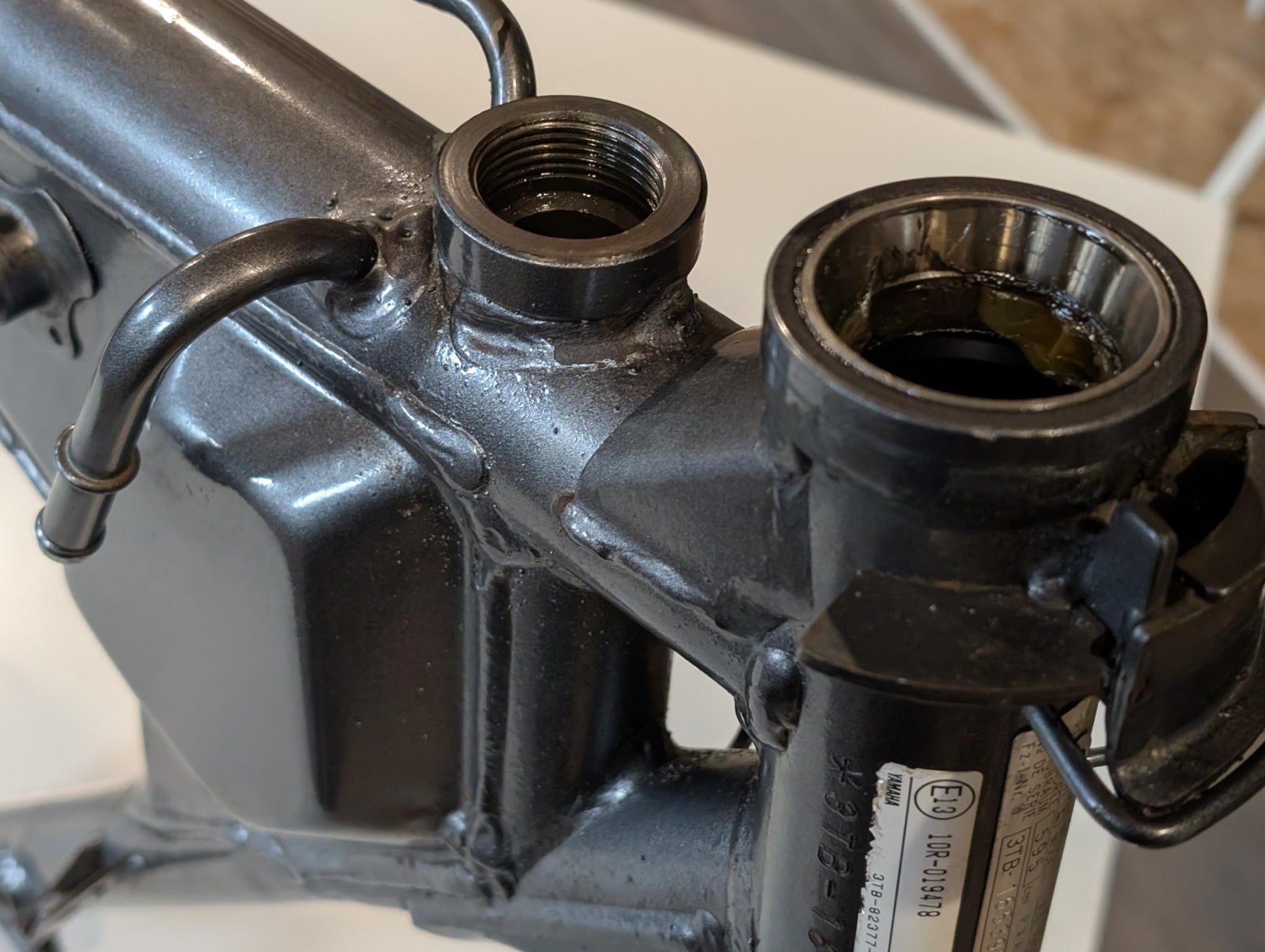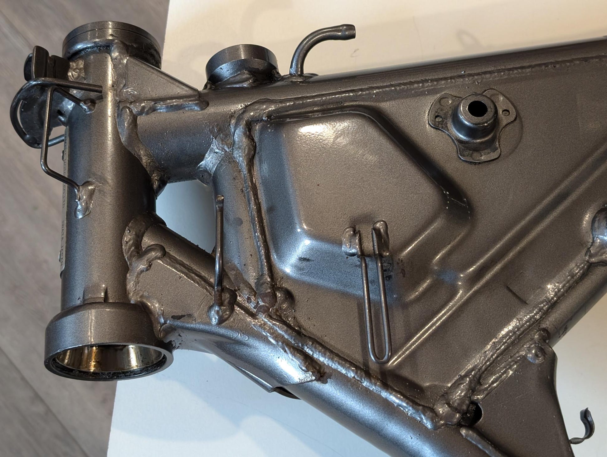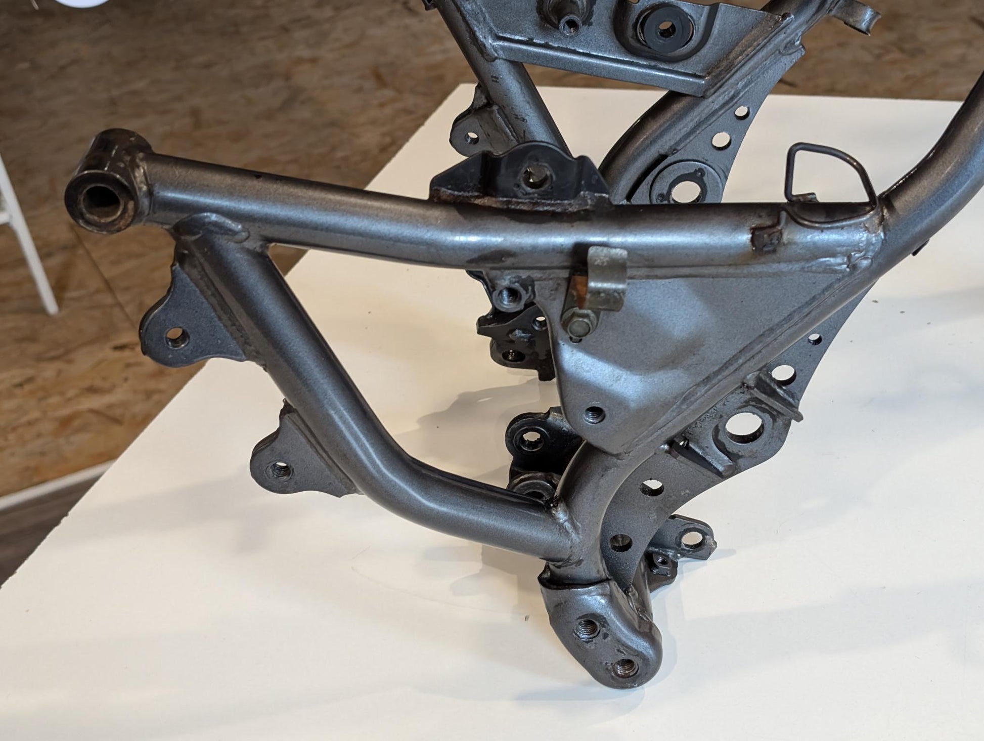 Yamaha XT600E 3TB 3UW Hauptrahmen grau metallic 3YP-21110-01 3TB-21182-10 gebraucht, in gutem altersgemäßem Zustand, mit Rostansätzen insbesondere in Schweißnahtbereichen, grob gereinigt so, dass ein Sandstrahler nicht meckern kann, Rahmennummer 3TB165397, Anzahl Vorhalter nach Unterlagen 6, Zustand und Lieferumfang siehe Fotos. Mit Briefen und Schein. Erstzulassung 09-1995. Erfahrungsgemäß werden Rahmen dieses Alters sandgestrahlt und neu lackiert oder pulverbeschichtet. Plakete vorher unbedingt sichern und nachher wieder annieten. Eingestanzte Rahmennummer muss nach Beschichtung sichtbar sein!