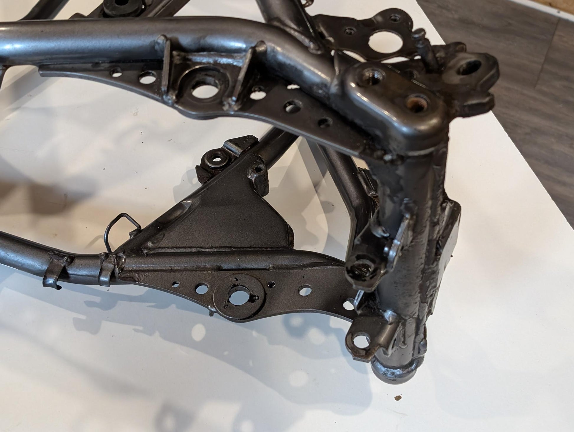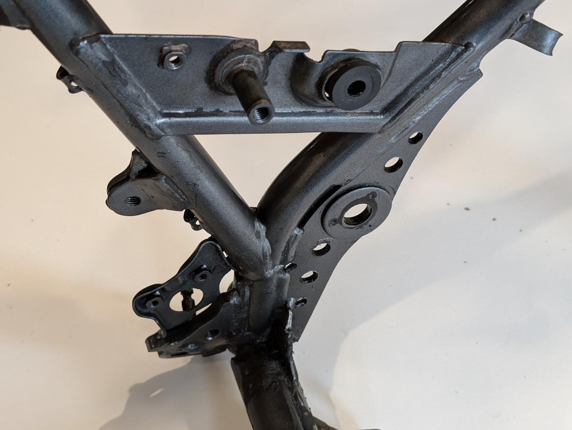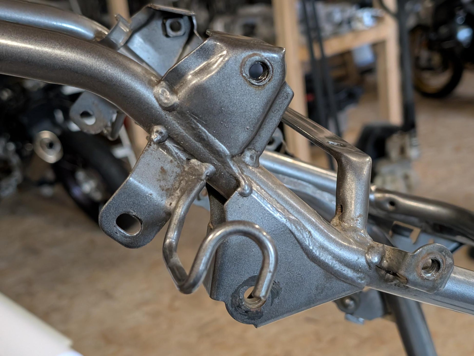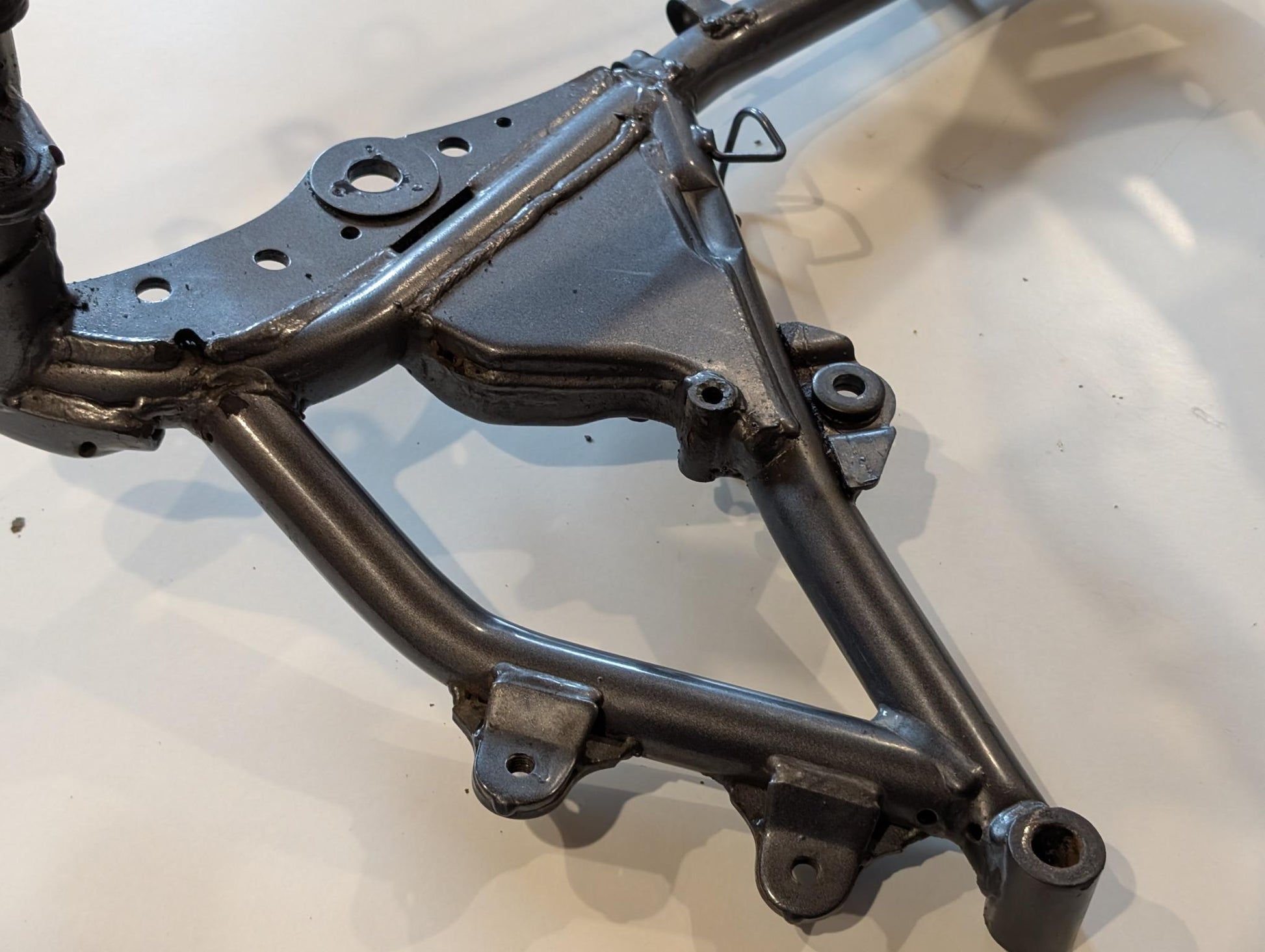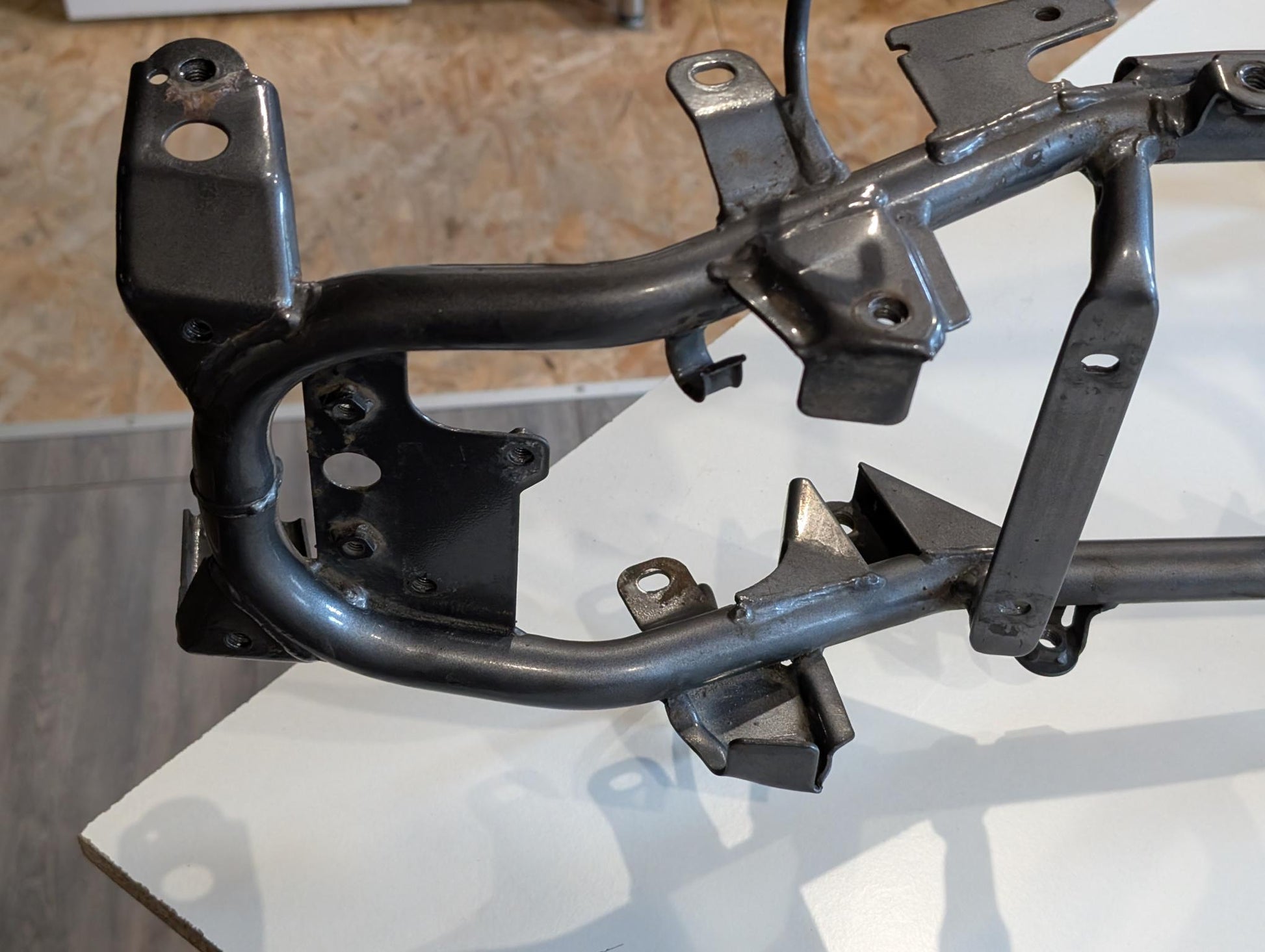 Yamaha XT600E 3TB 3UW Hauptrahmen grau metallic 3YP-21110-01 3TB-21182-10 gebraucht, in gutem altersgemäßem Zustand, mit Rostansätzen insbesondere in Schweißnahtbereichen, grob gereinigt so, dass ein Sandstrahler nicht meckern kann, Rahmennummer 3TB165397, Anzahl Vorhalter nach Unterlagen 6, Zustand und Lieferumfang siehe Fotos. Mit Briefen und Schein. Erstzulassung 09-1995. Erfahrungsgemäß werden Rahmen dieses Alters sandgestrahlt und neu lackiert oder pulverbeschichtet. Plakete vorher unbedingt sichern und nachher wieder annieten. Eingestanzte Rahmennummer muss nach Beschichtung sichtbar sein!