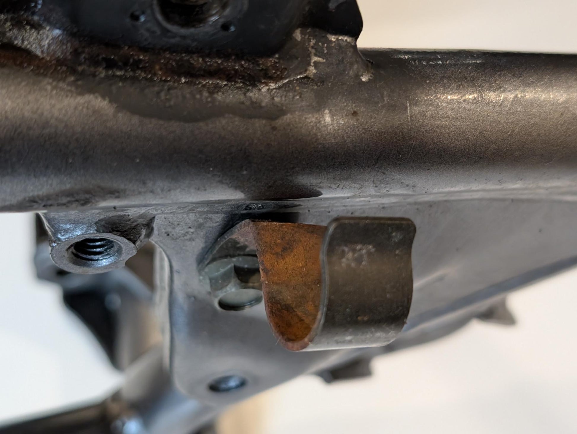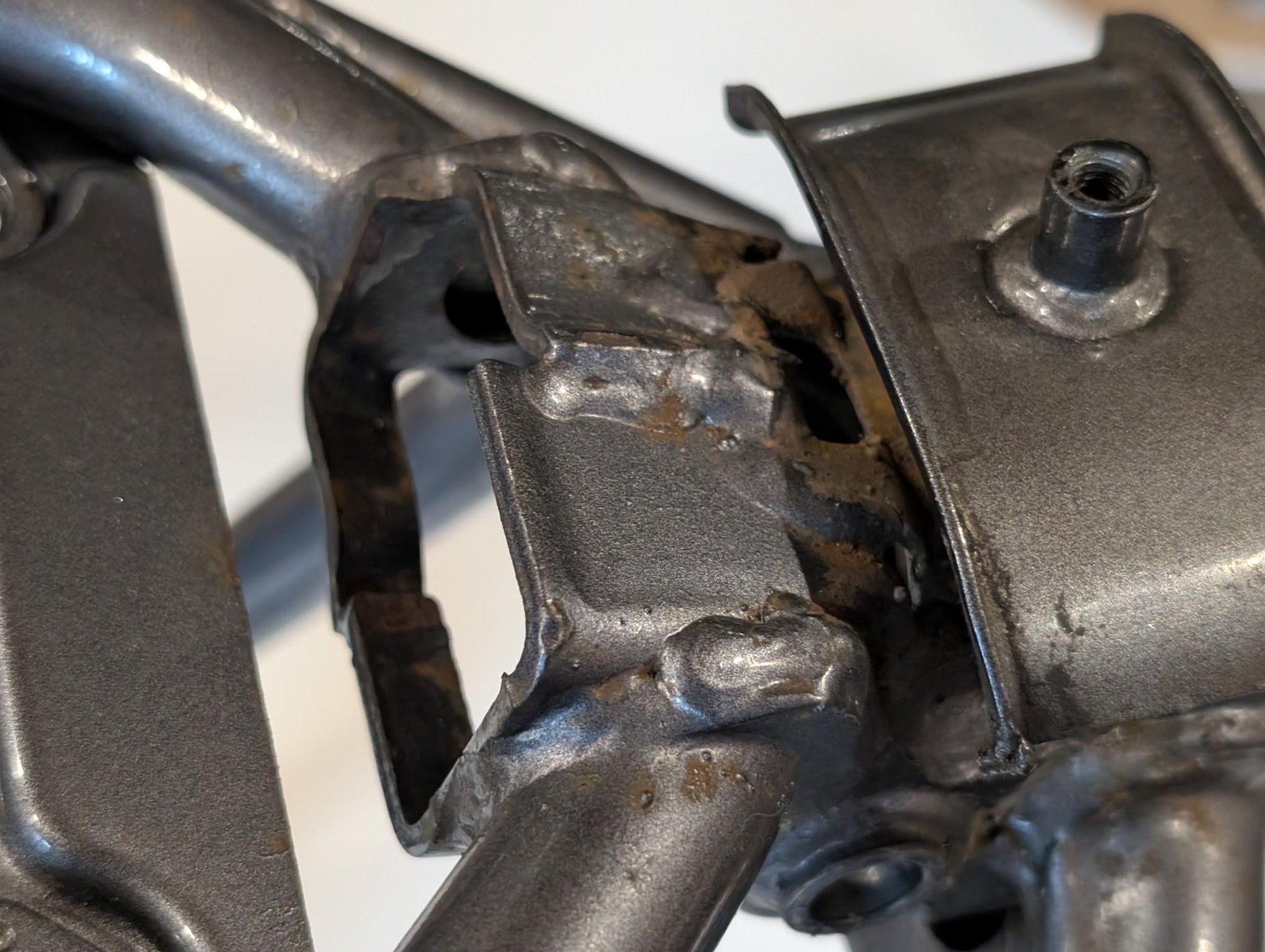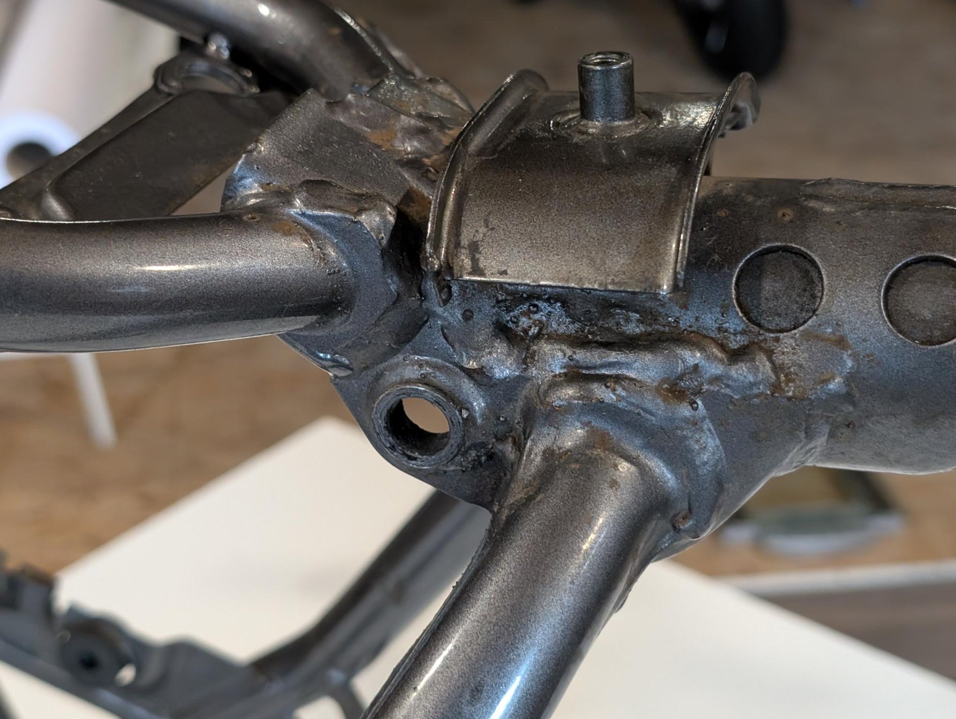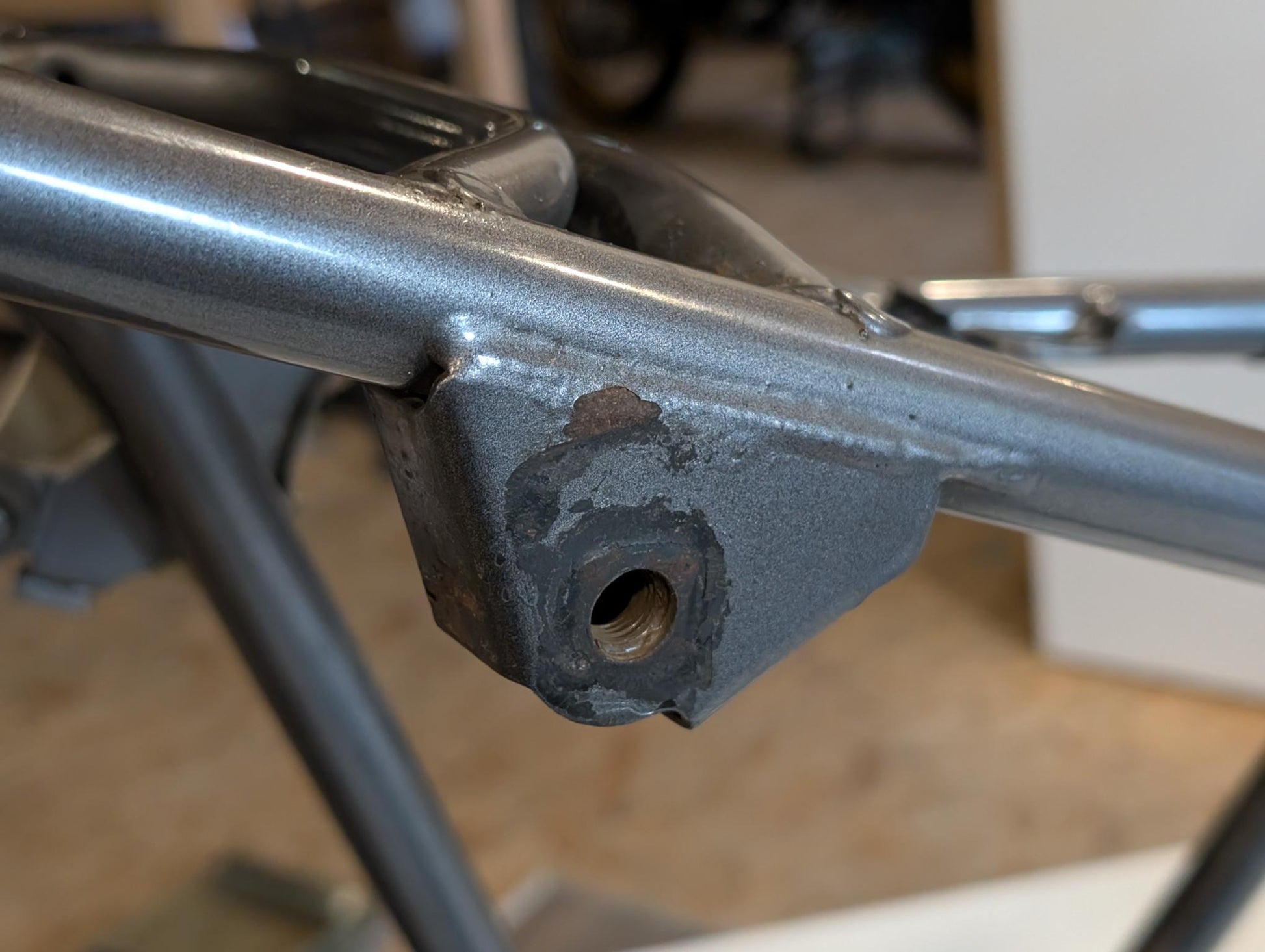 Yamaha XT600E 3TB 3UW Hauptrahmen grau metallic 3YP-21110-01 3TB-21182-10 gebraucht, in gutem altersgemäßem Zustand, mit Rostansätzen insbesondere in Schweißnahtbereichen, grob gereinigt so, dass ein Sandstrahler nicht meckern kann, Rahmennummer 3TB165397, Anzahl Vorhalter nach Unterlagen 6, Zustand und Lieferumfang siehe Fotos. Mit Briefen und Schein. Erstzulassung 09-1995. Erfahrungsgemäß werden Rahmen dieses Alters sandgestrahlt und neu lackiert oder pulverbeschichtet. Plakete vorher unbedingt sichern und nachher wieder annieten. Eingestanzte Rahmennummer muss nach Beschichtung sichtbar sein!