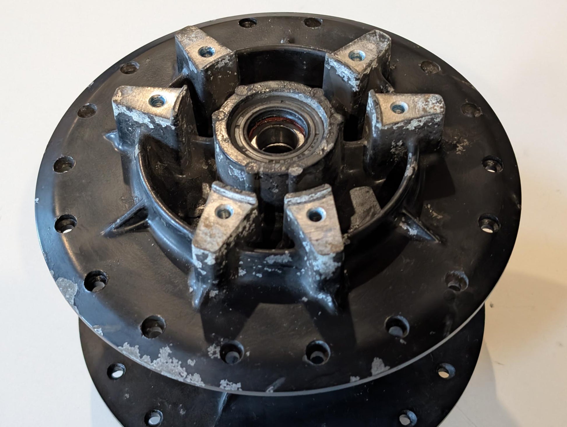 Yamaha XT600E 3TB 3UW Radnabe 2KF-25311-00-98 Hinterrad hinten gebraucht, in gutem altersgemäßem Zustand, leichte Korrosionsansätze, dadurch Lackablösungen, Zustand und Lieferumfang siehe Fotos. Lager sind in Ordnung.