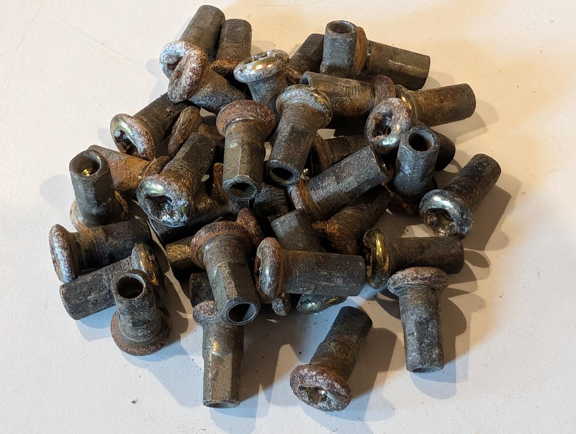 Yamaha XT600E 3TB 3UW Speichensatz Hinterrad 3TB-25304-00 hinten 36 Speichen und 36 zugehörige Nippel gebraucht, in altersgemäßem Zustand, ungereinigt, leichte Korrosionsansätze aber gering, Nippel teilweise im Kreuzschlitzbereich verschlissen, Zustand und Lieferumfang siehe Fotos.