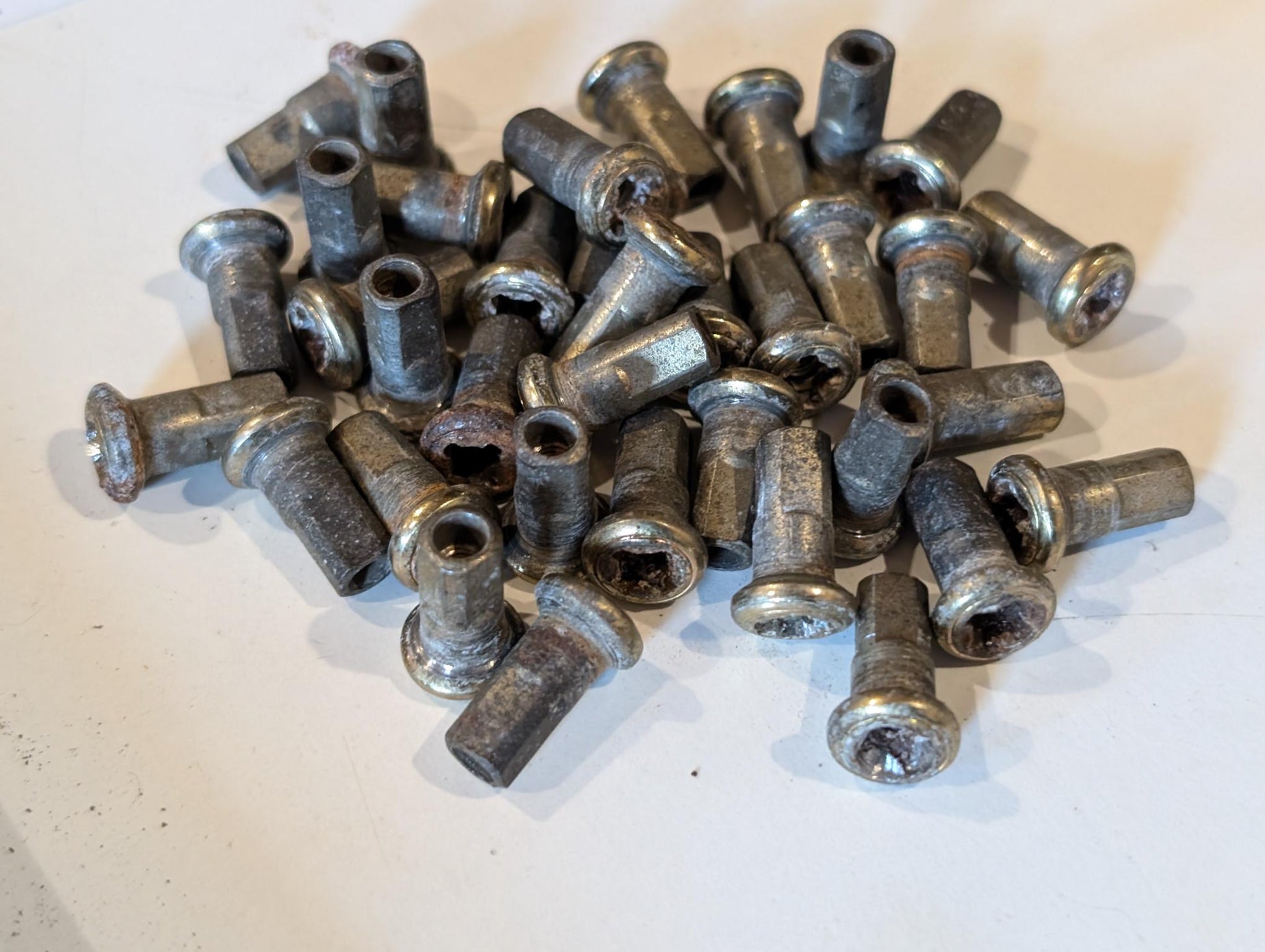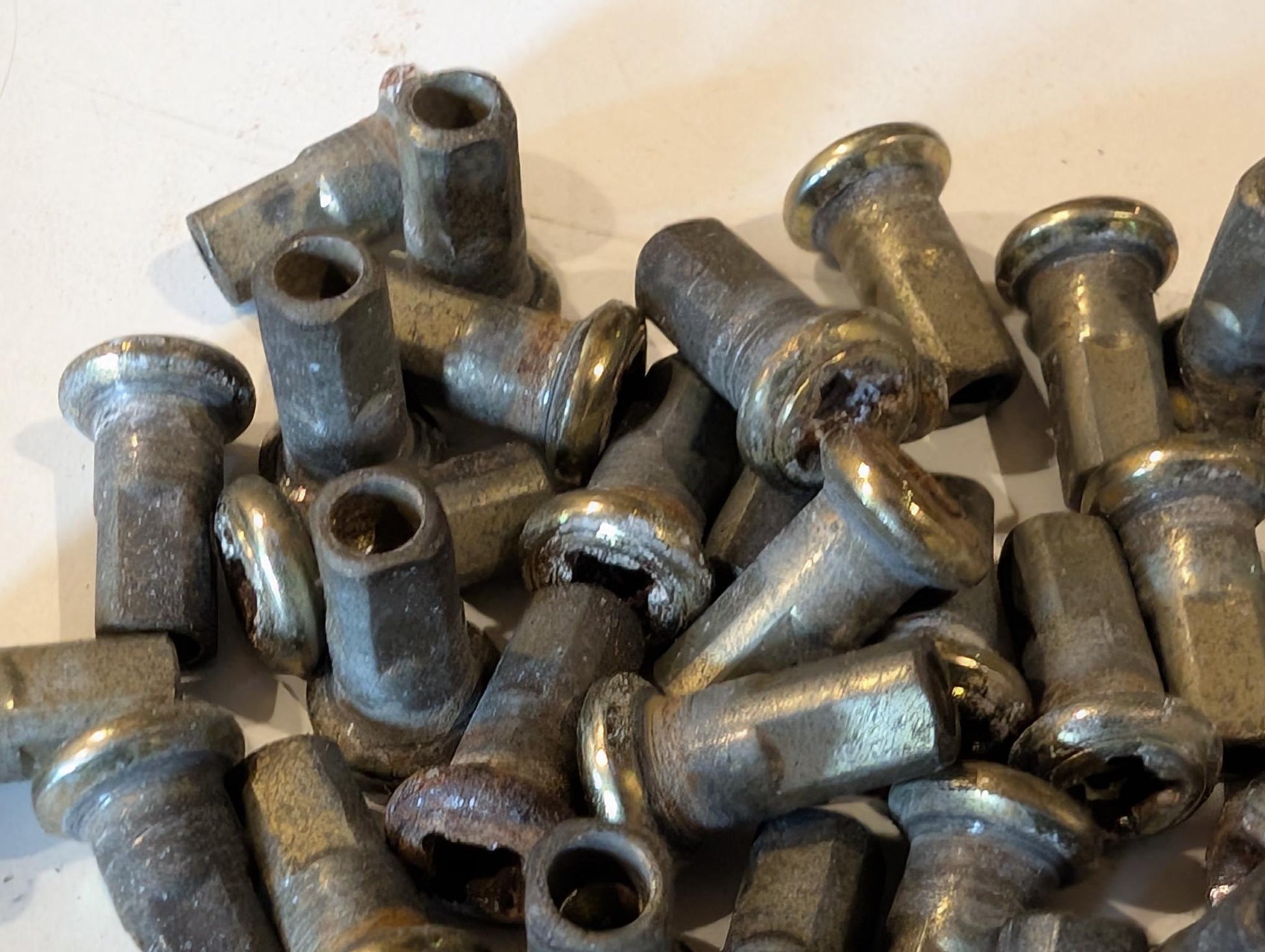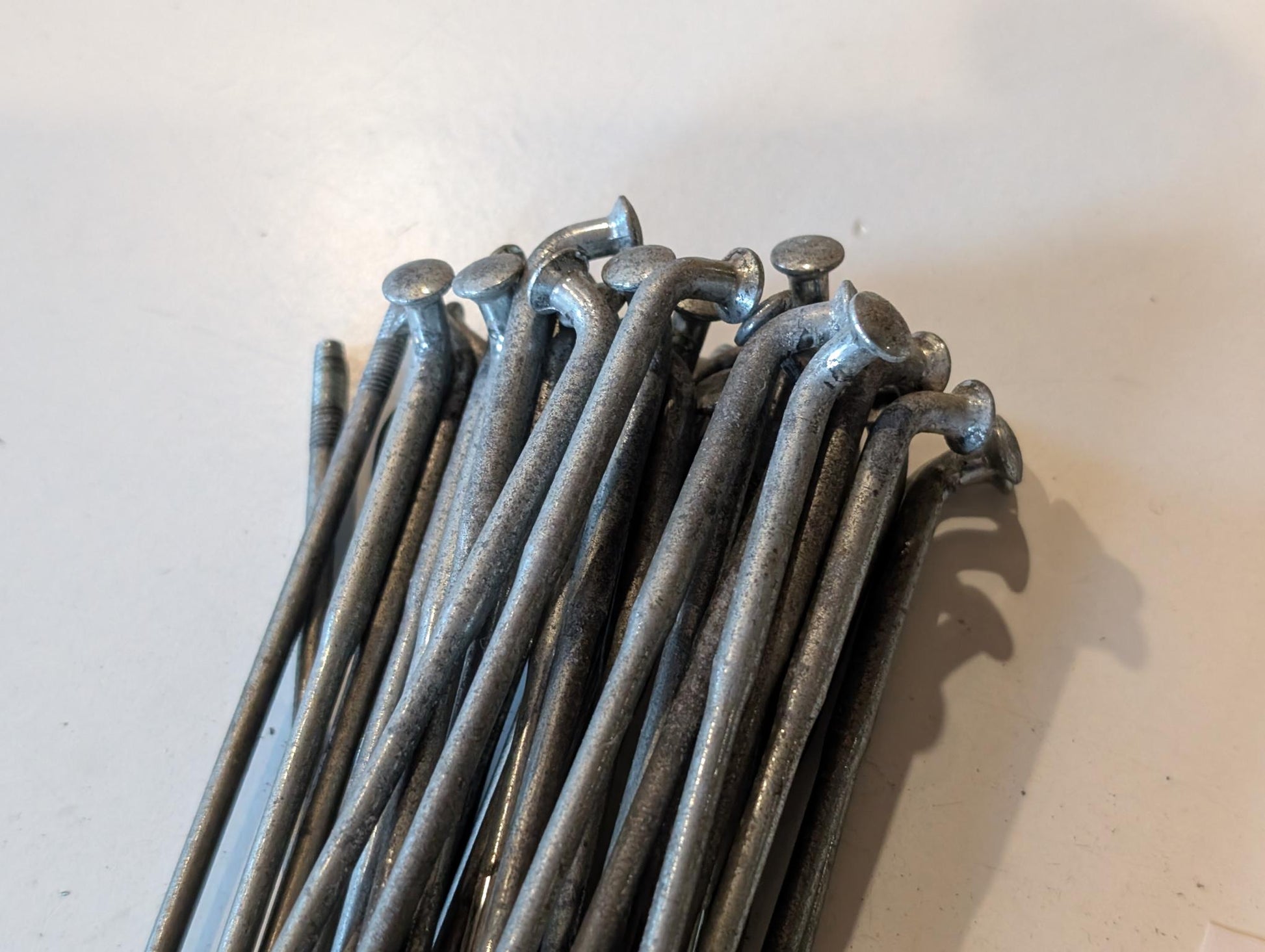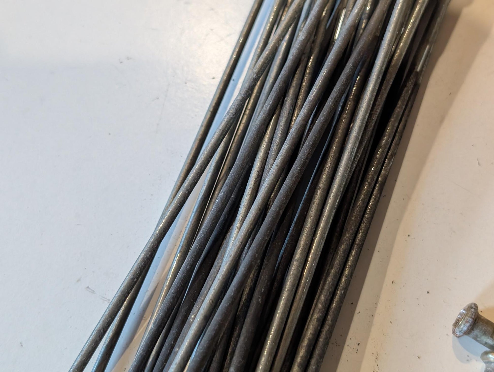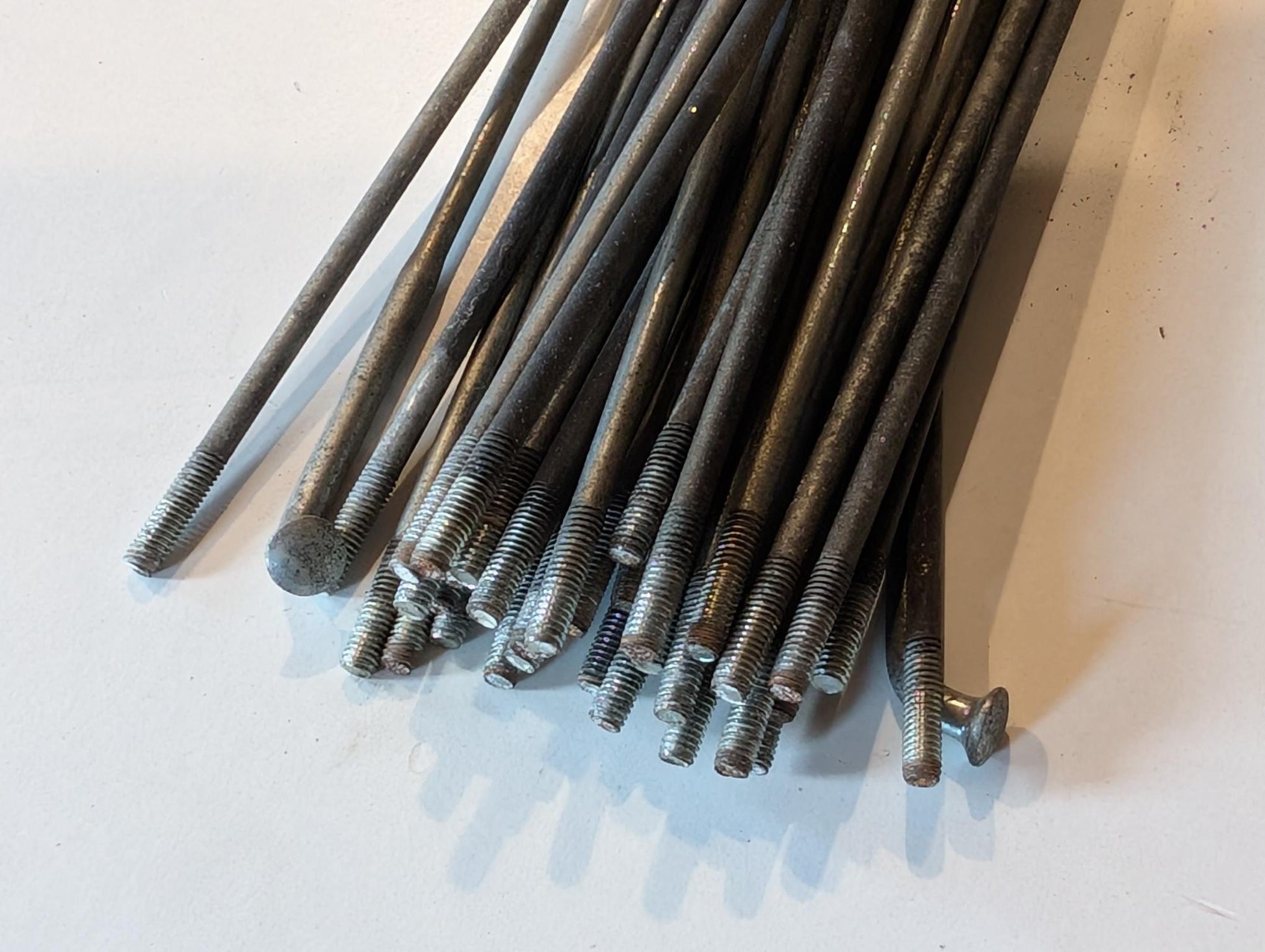 Yamaha XT600E 3TB 3UW Speichensatz Vorderrad 3TB-25104-00 vorne 36 Speichen und Nippel gebraucht, in altersgemäßem Zustand, ungereinigt, leichte Korrosionsansätze aber gering, Nippel teilweise im Kreuzschlitzbereich verschlissen, Zustand und Lieferumfang siehe Fotos.